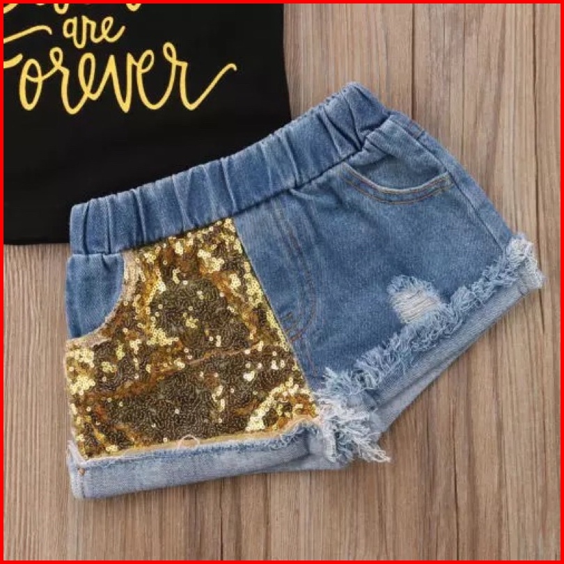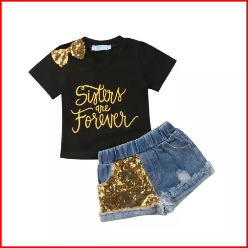 0-5th Setelan Anak Bayi Balita Perempuan Kaos Jeans Sequin Sister