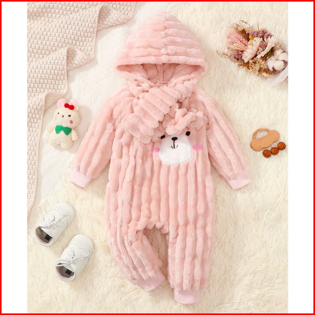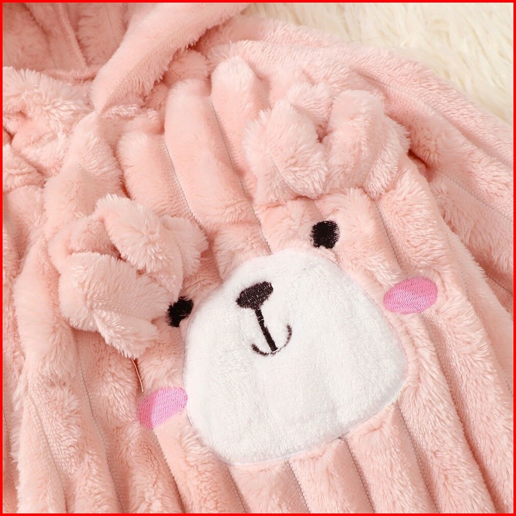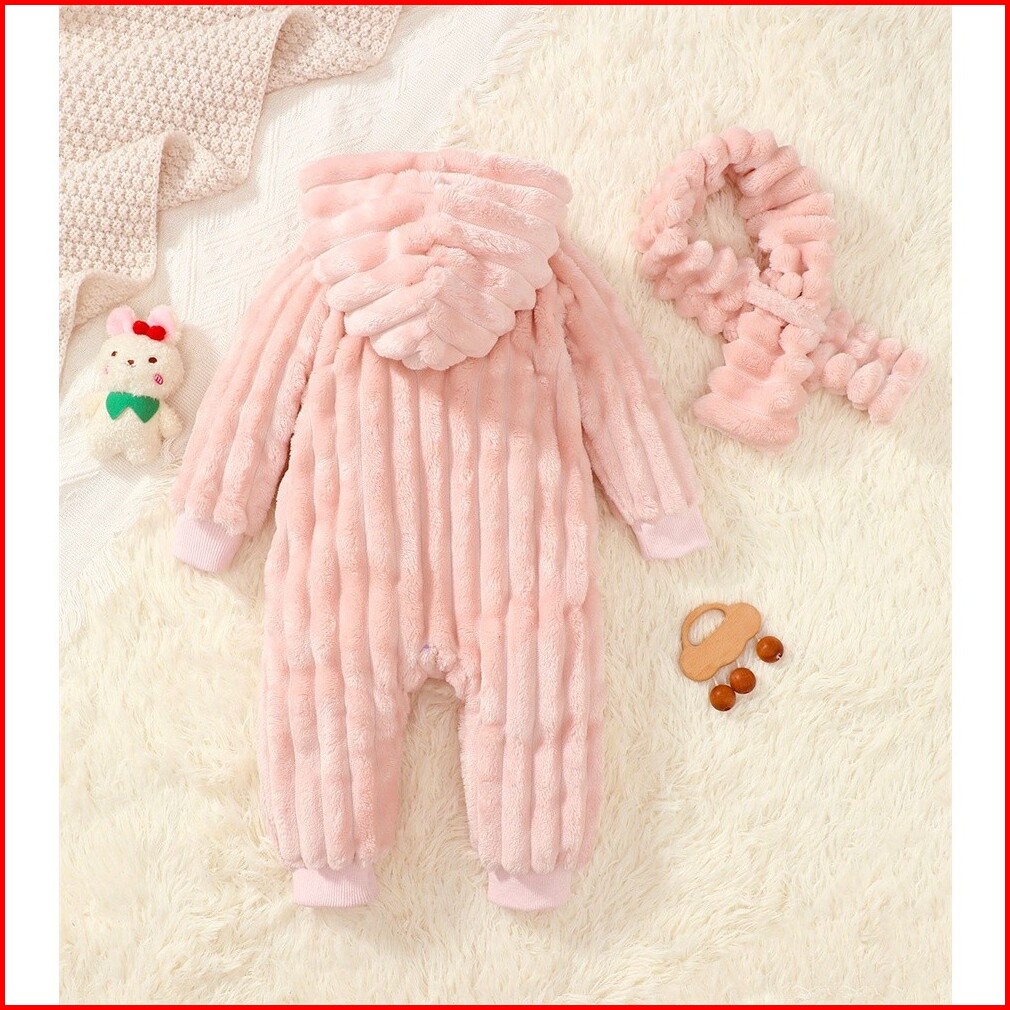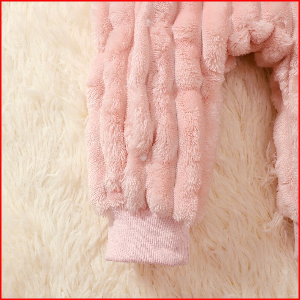 Mikdrdoo 1-24 Months Newborn Baby Girl 2pcs Clothes Set Pink Plush Rabbit Hooded Jumpsuit With Headwear Fashion Cute Bab