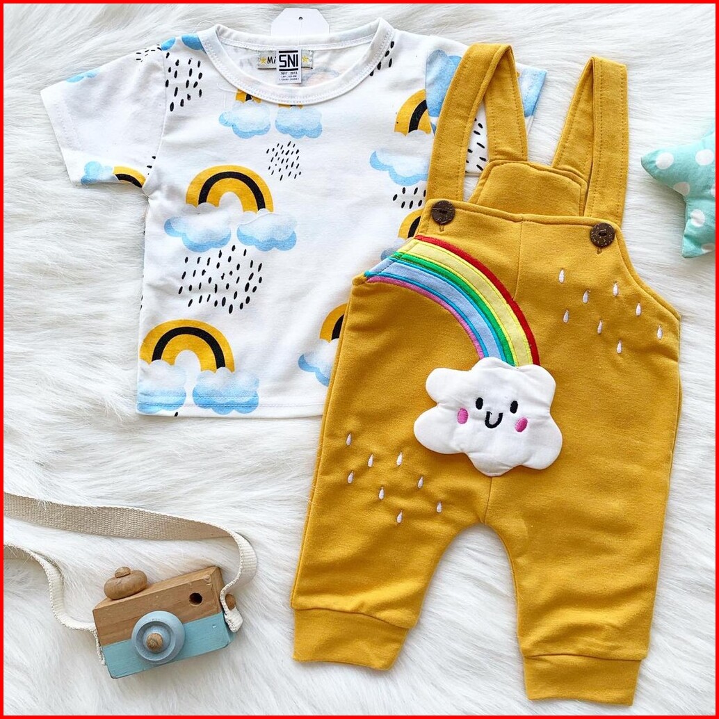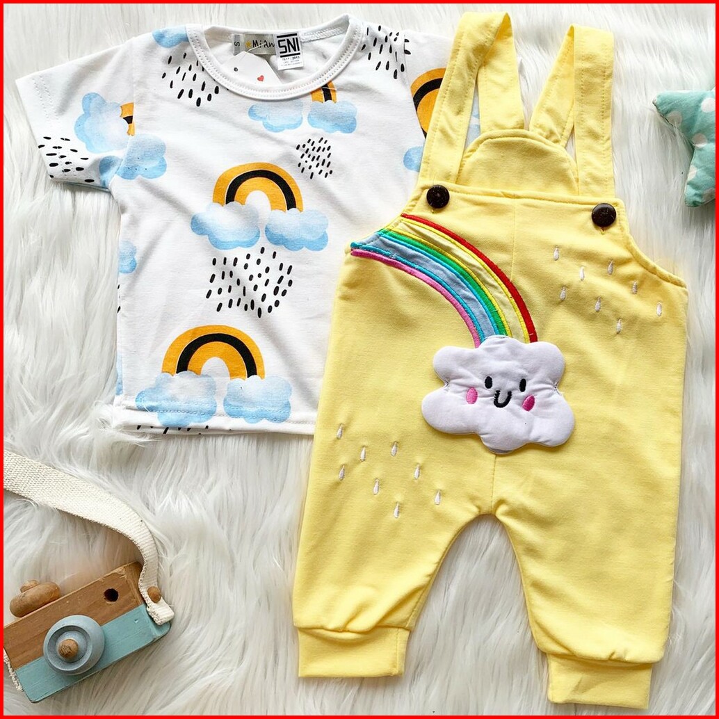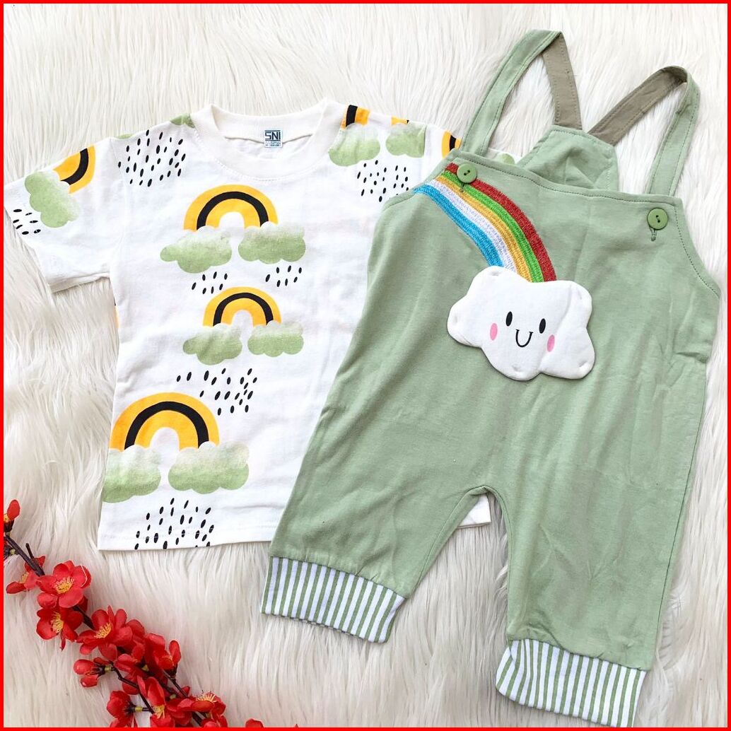 Setelan Baju Kaos Dan Overall Kodok Motif Lucu Bestseller Fashion Anak Bayi Cewek Cowok Murah -rai