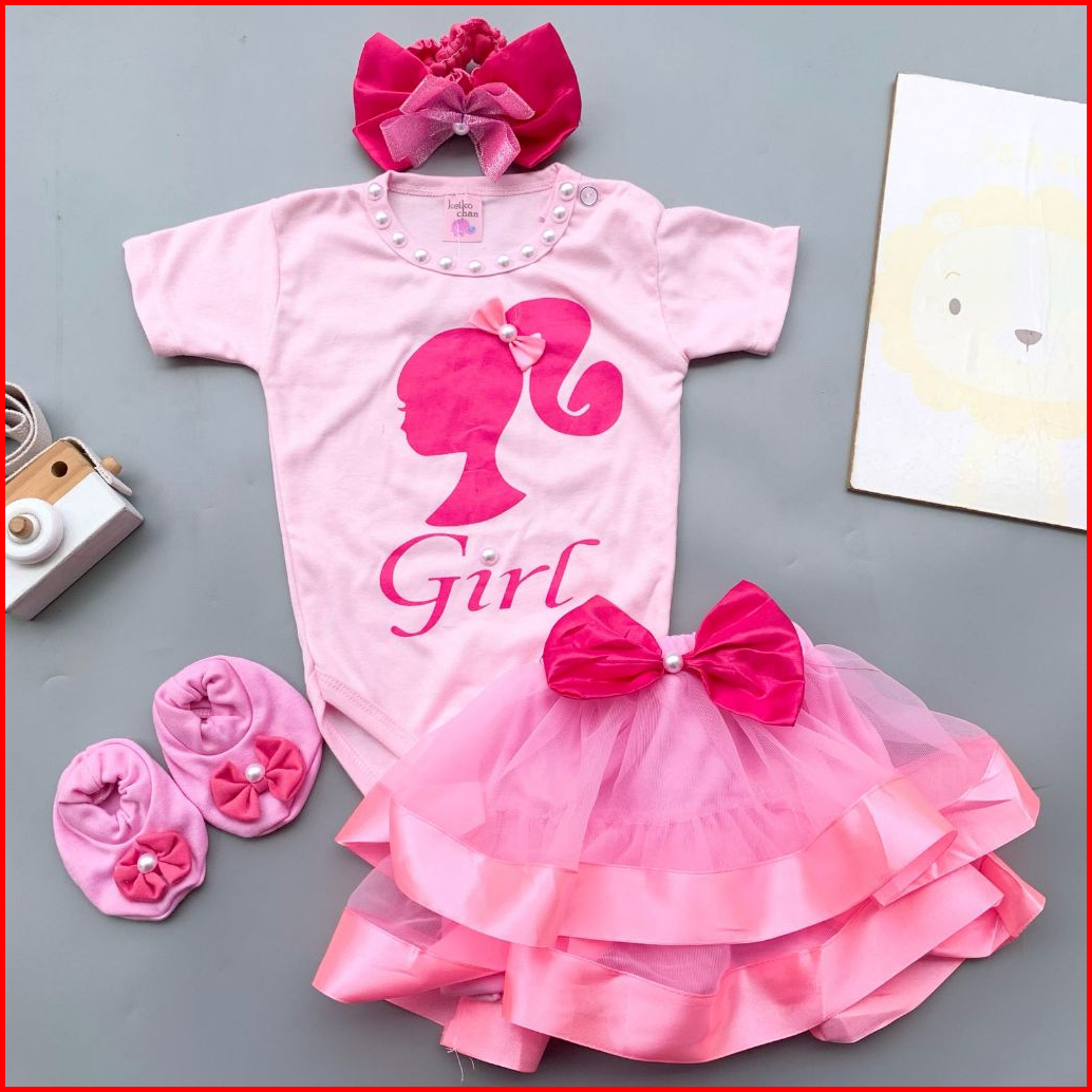Babyshop- Baju Setelan Jumper Motif Barbie Fashion Bayi Perempuan Untuk Pergi Jalan Murah Bestseller Model Kekinian Bayi
