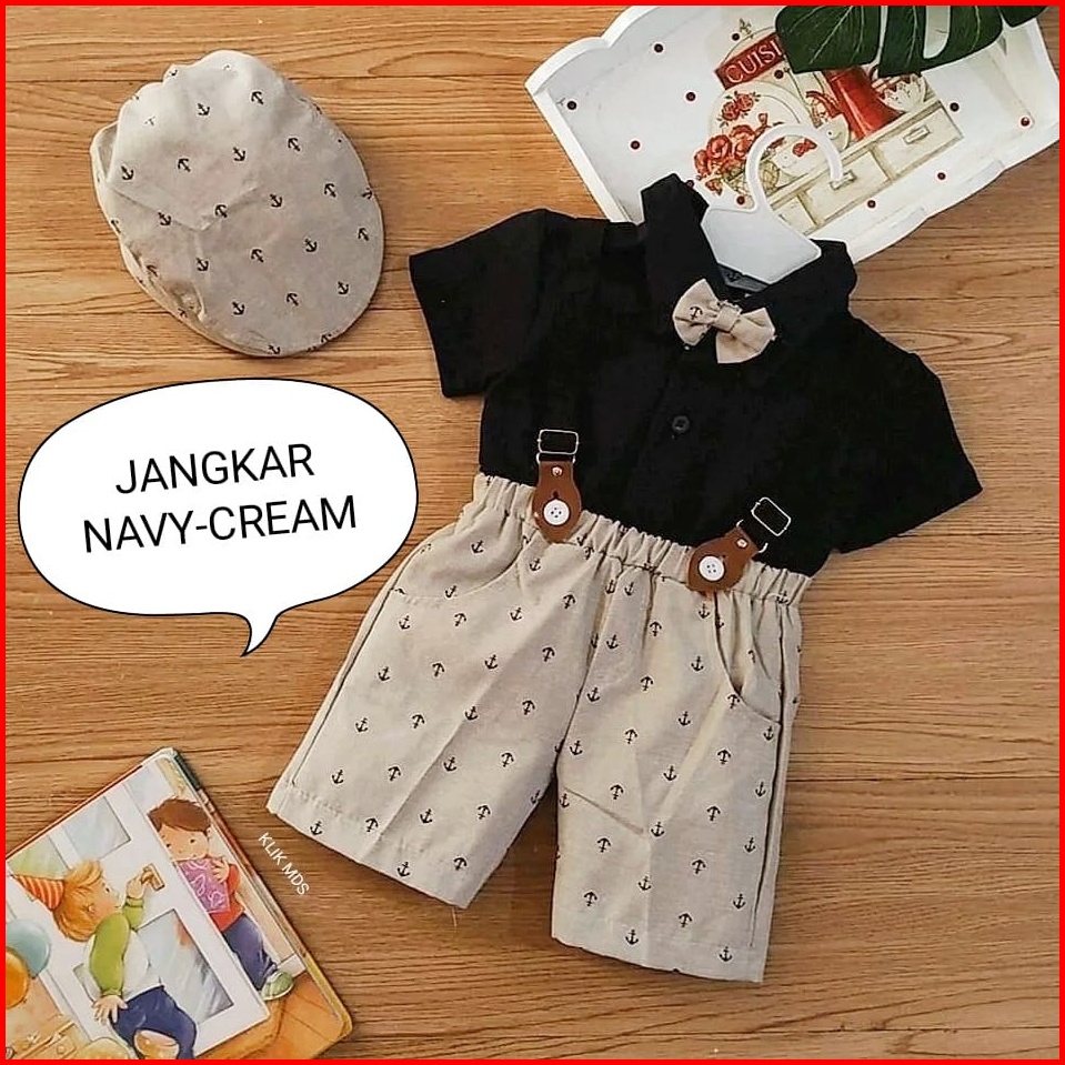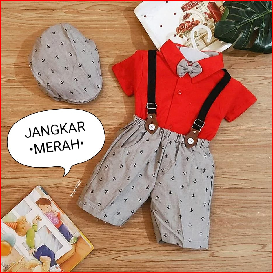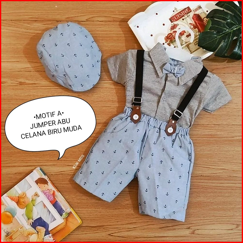 Mds Jumper Baju Anak Laki-laki Motif Suspender Jangkar Free Dasi Dan Topi Ada 3 Size