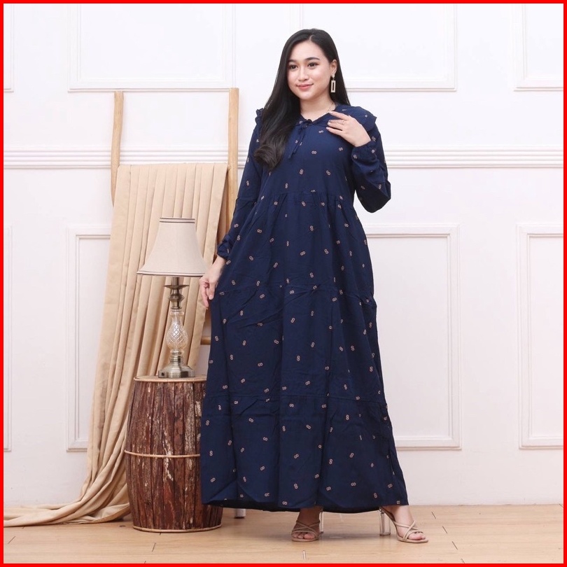 Midi Dress Motif Gg Dress Korean Style Dress Susun Daster Lengan Panjang Daster Bahan Rayon Premium Grade A Tebal Tidak