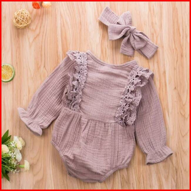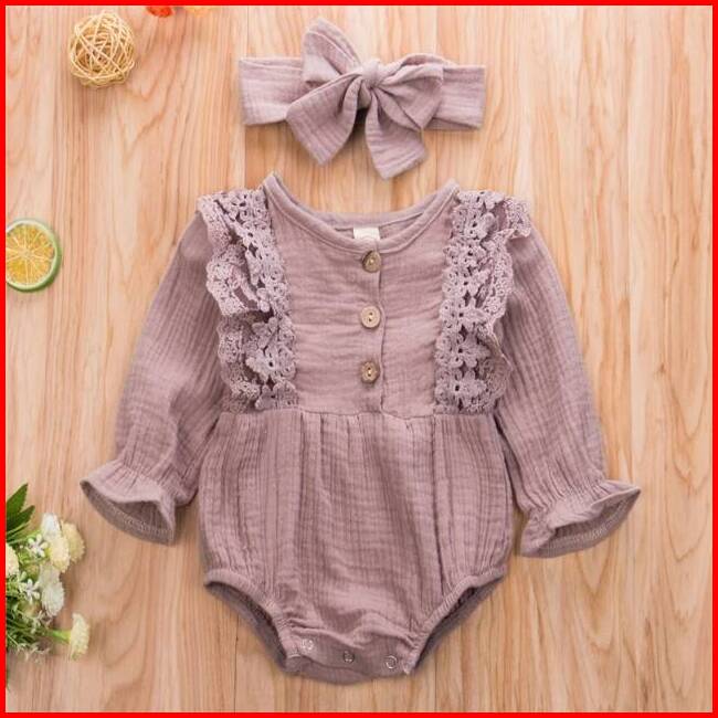 Romper Bayi Perempuan Purple Lace Plus Bandana Cantik