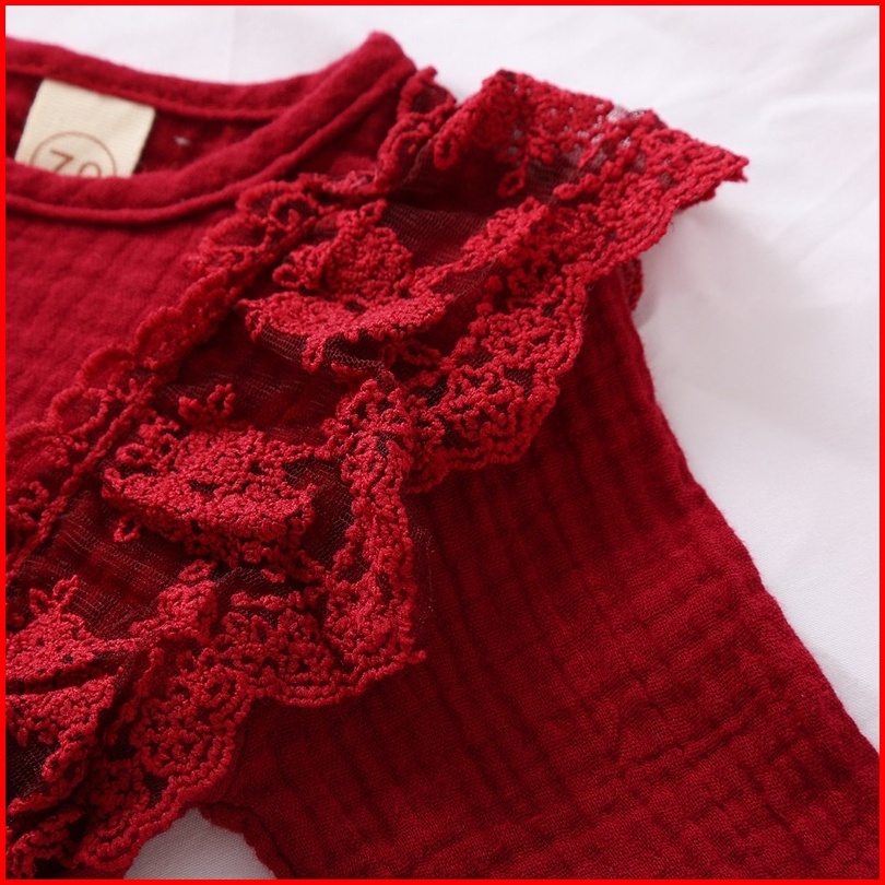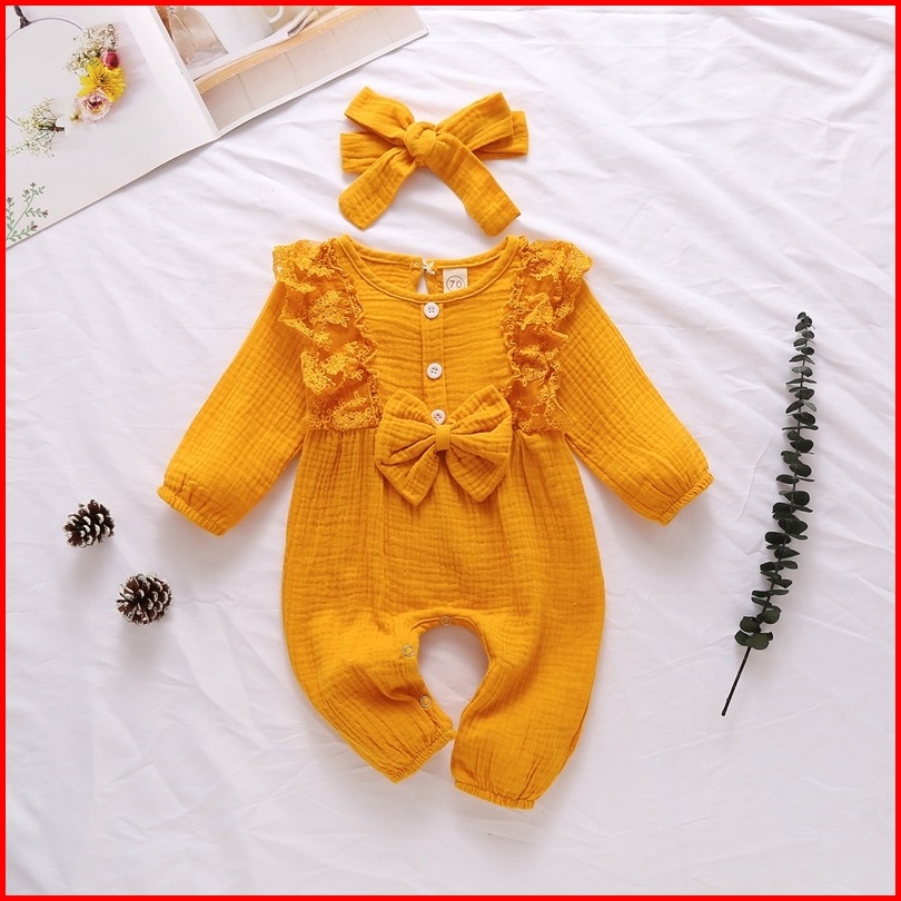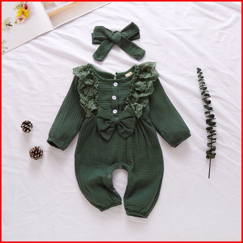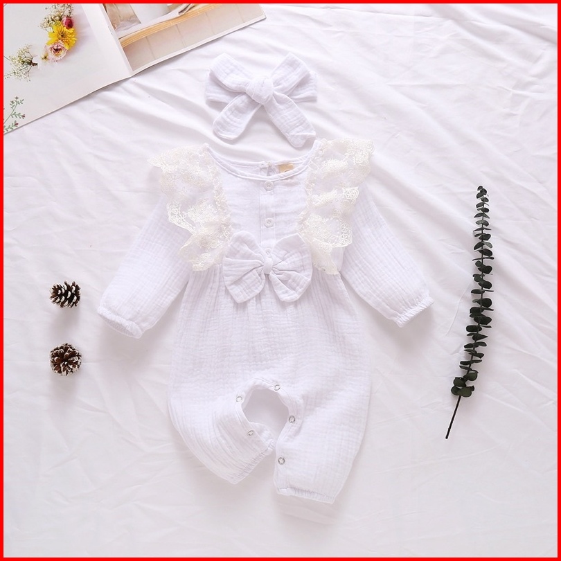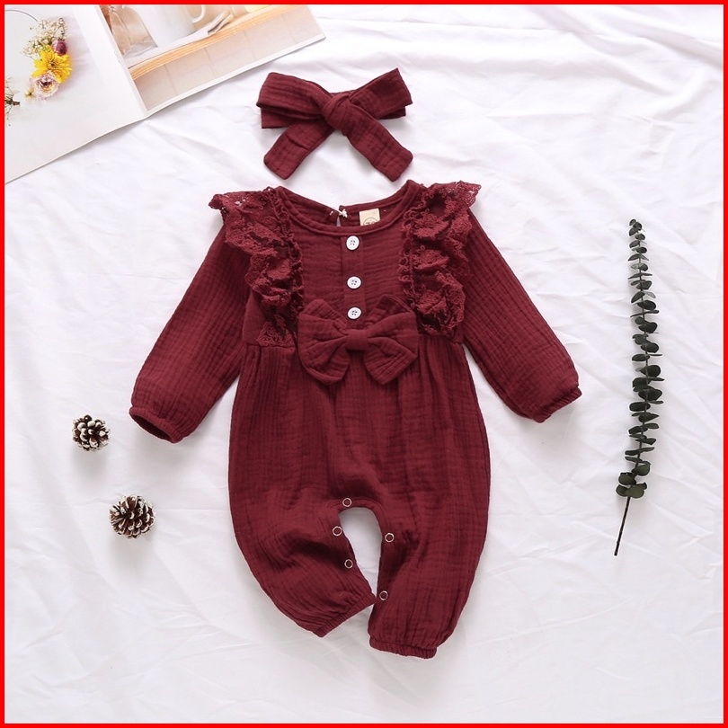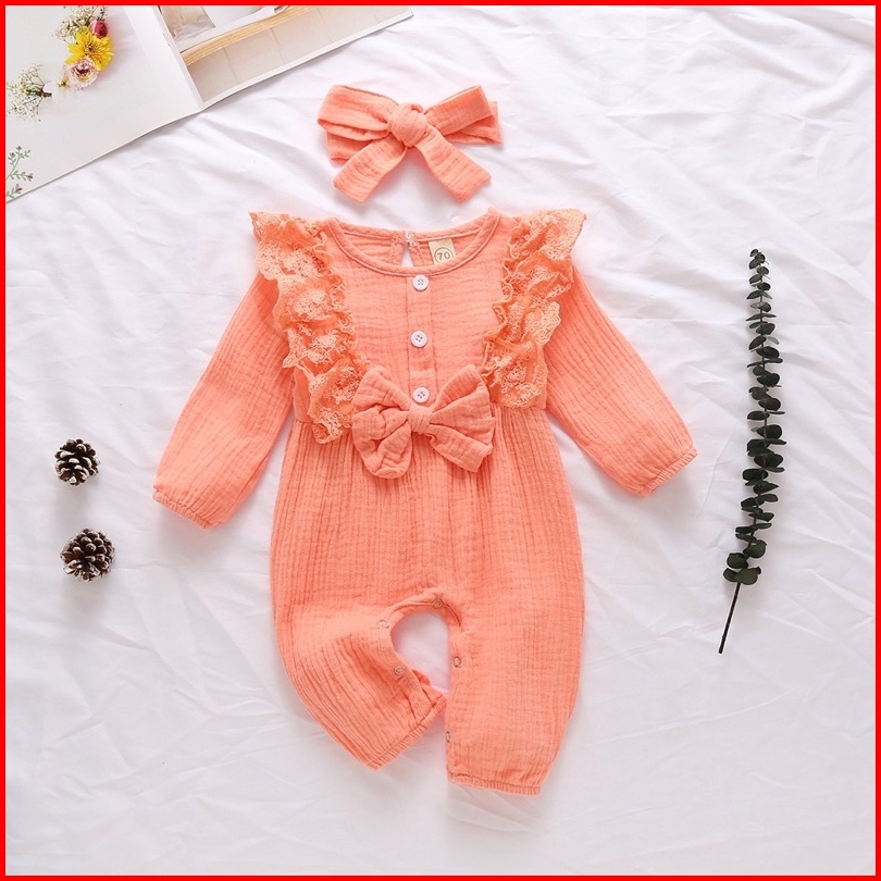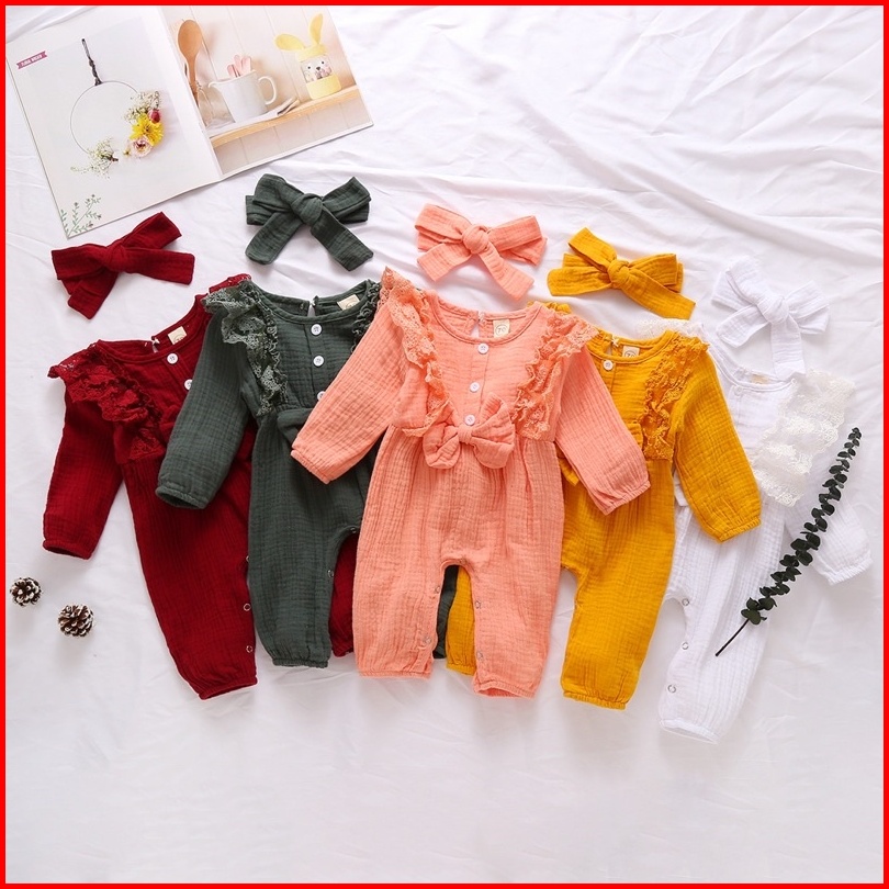 Romper Bayi Perempuan Import Retro Lengan Panjang Ribbon 0-18 Bulan