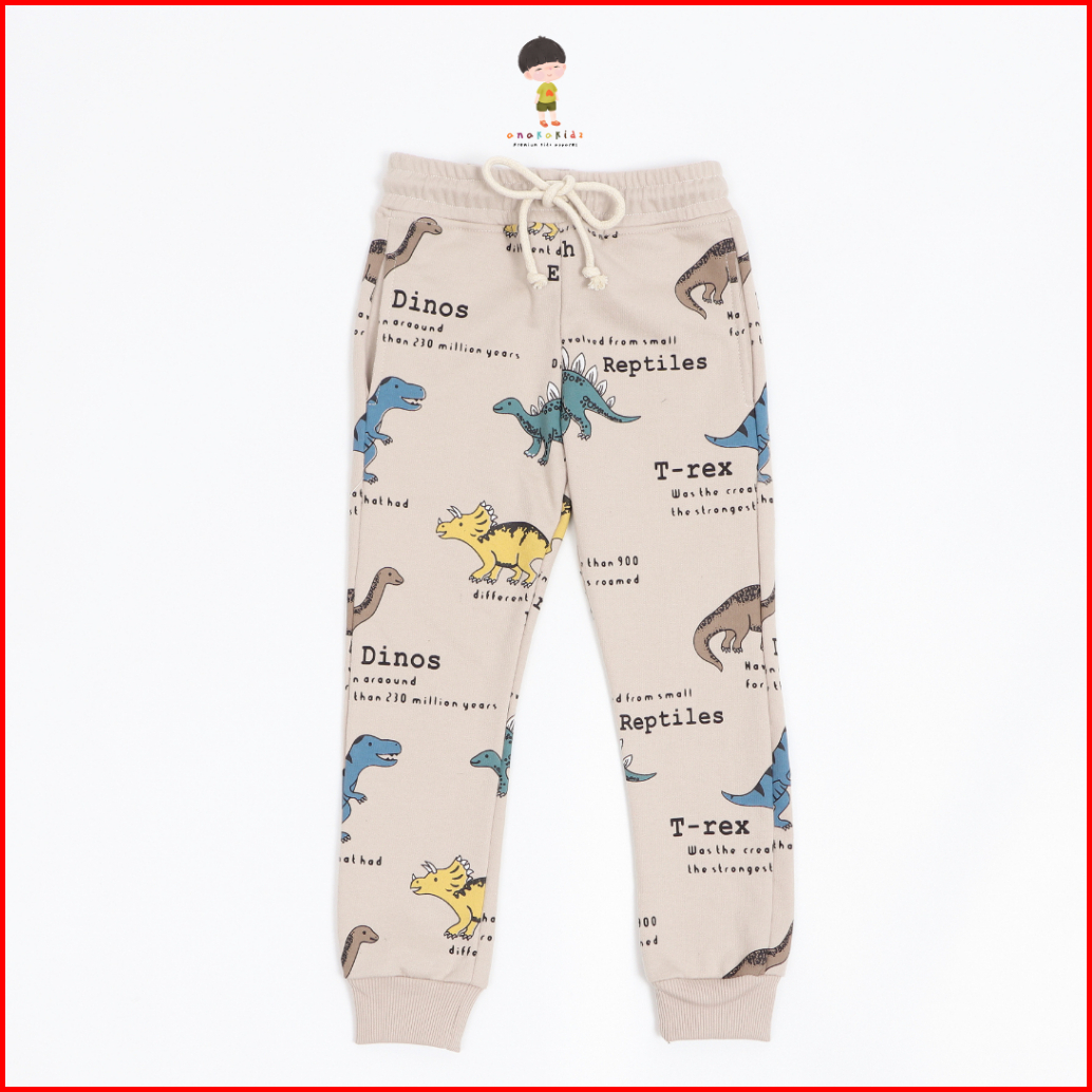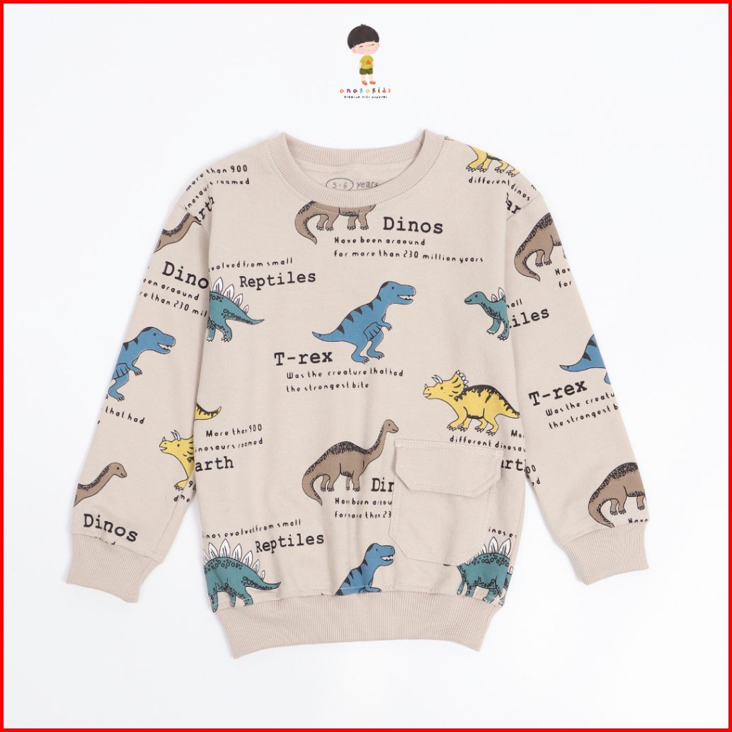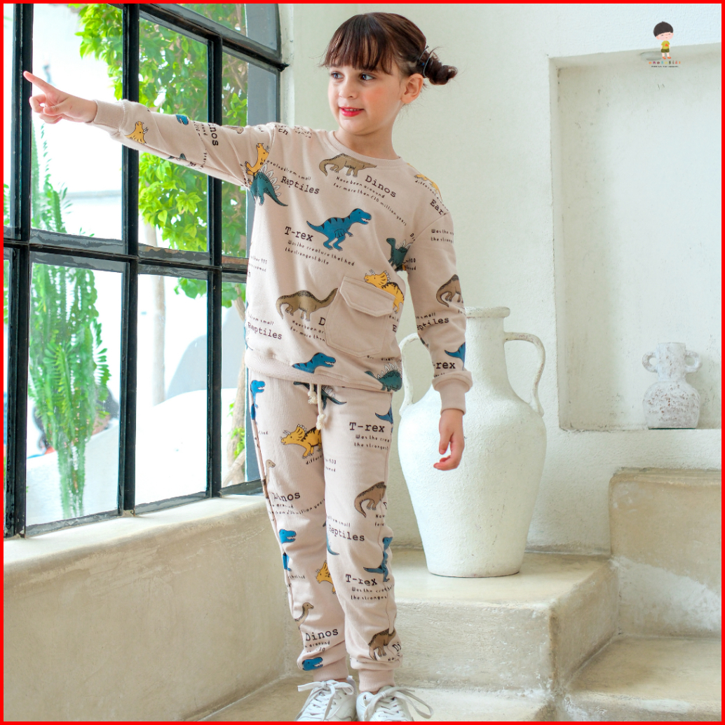 Anakakidz Sweater Crewneck Jogger Anak Set Fullprint Dino Light Brown Setelan Anak Unisex 1 - 10 Tahun