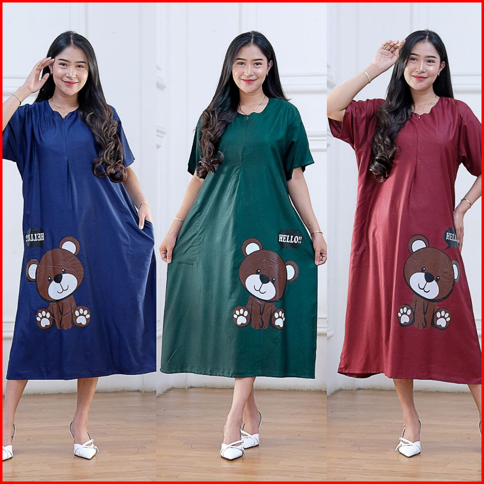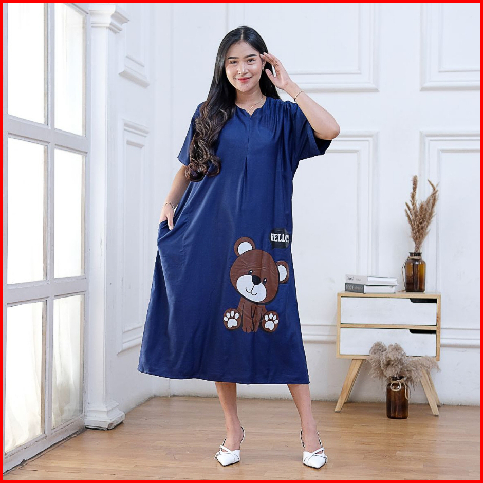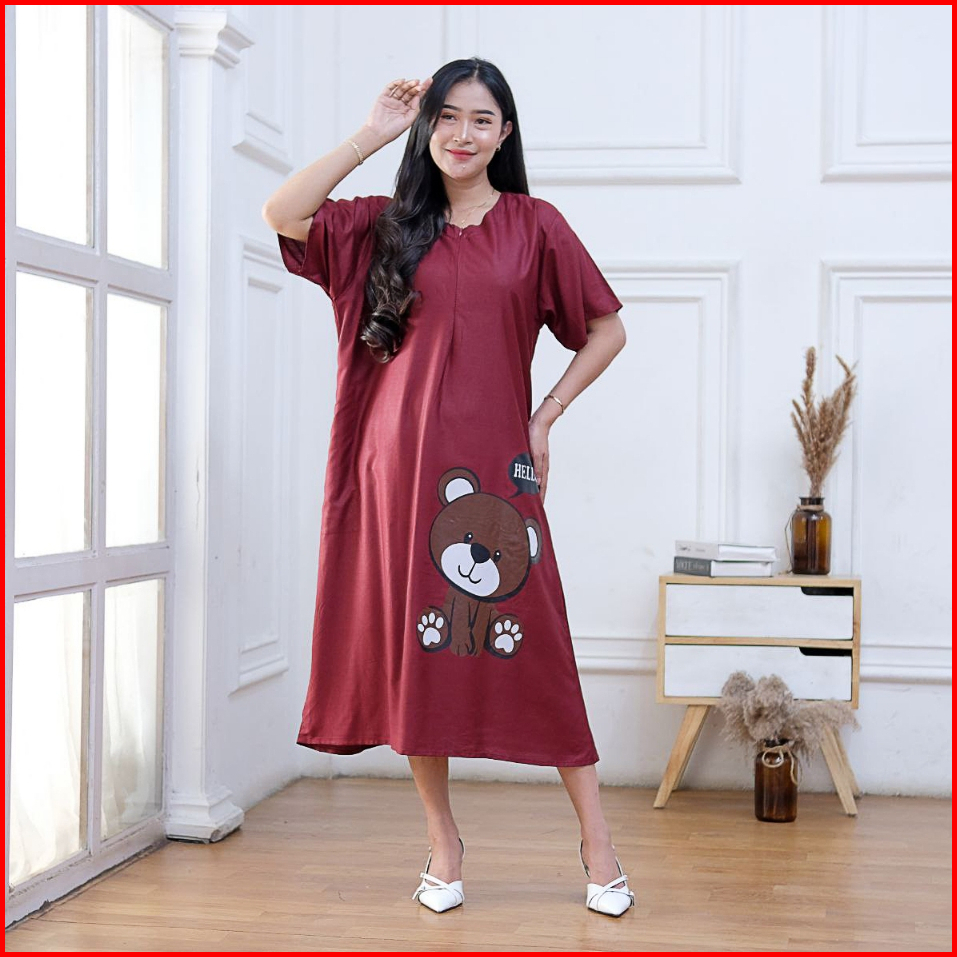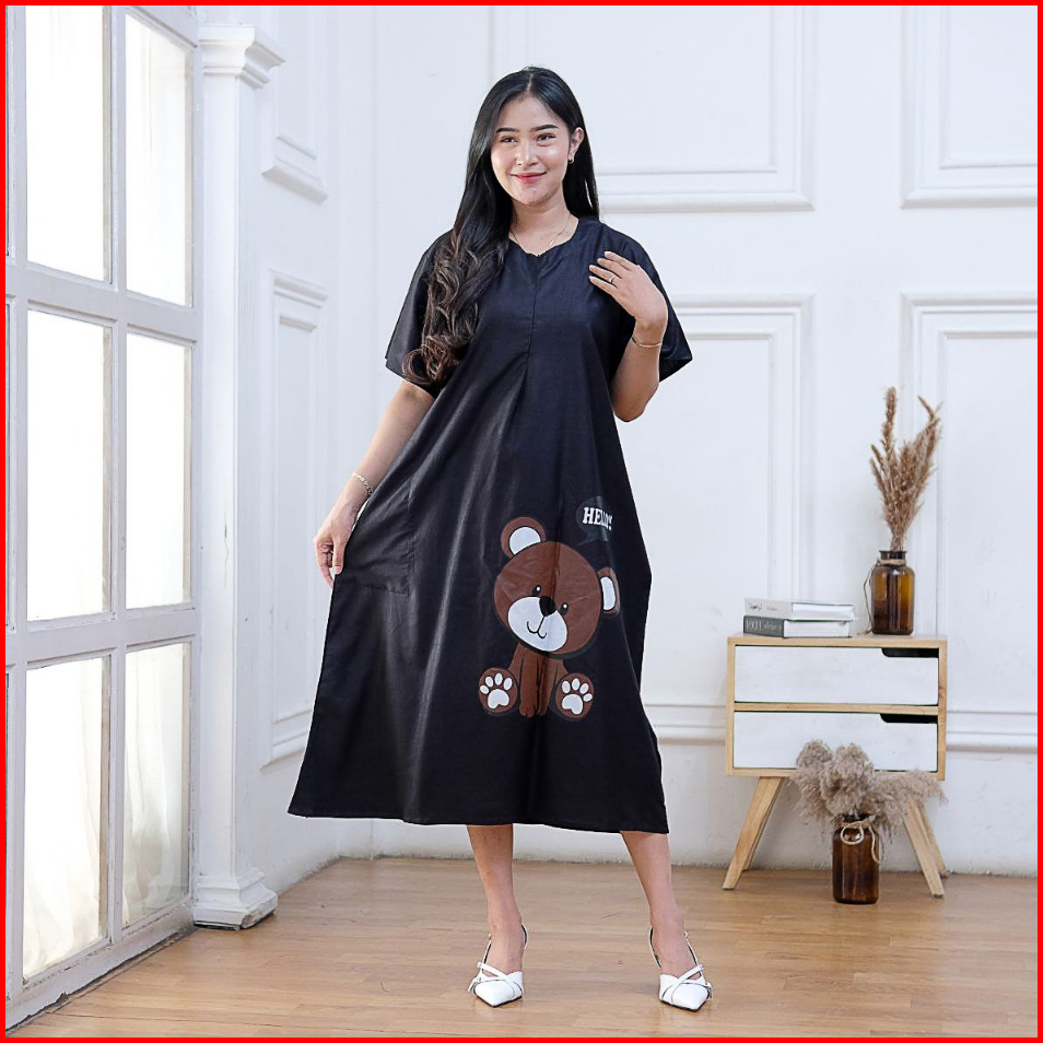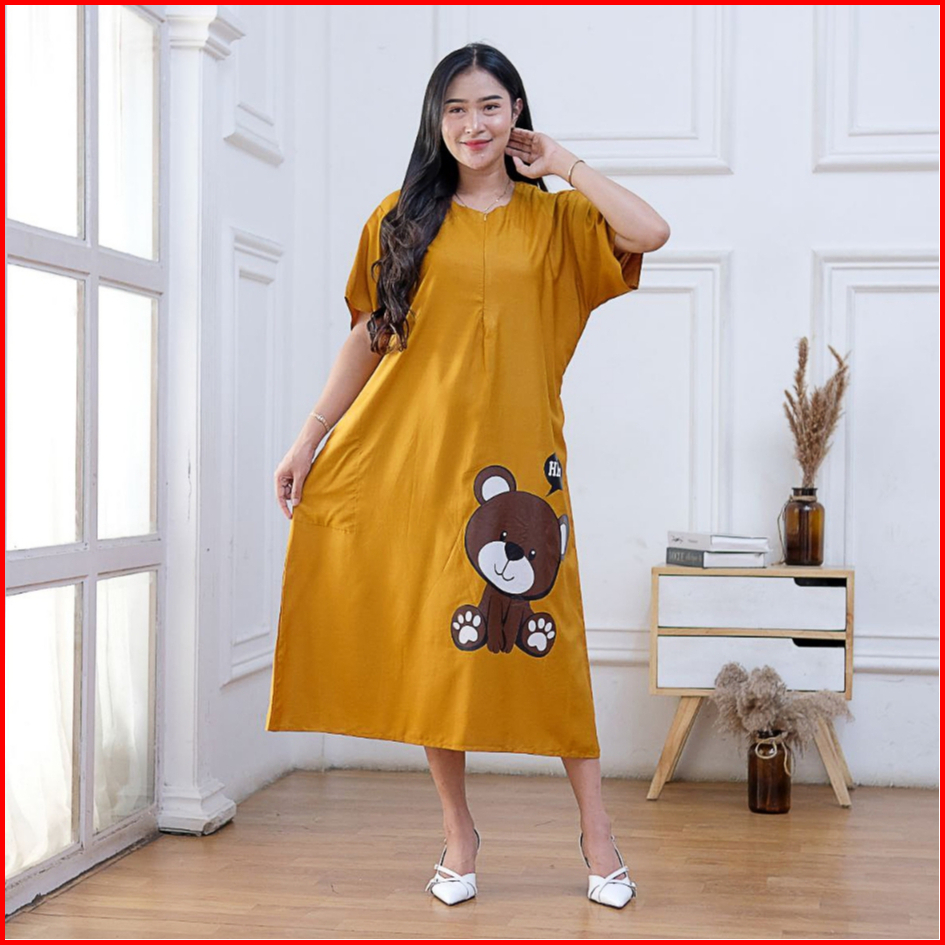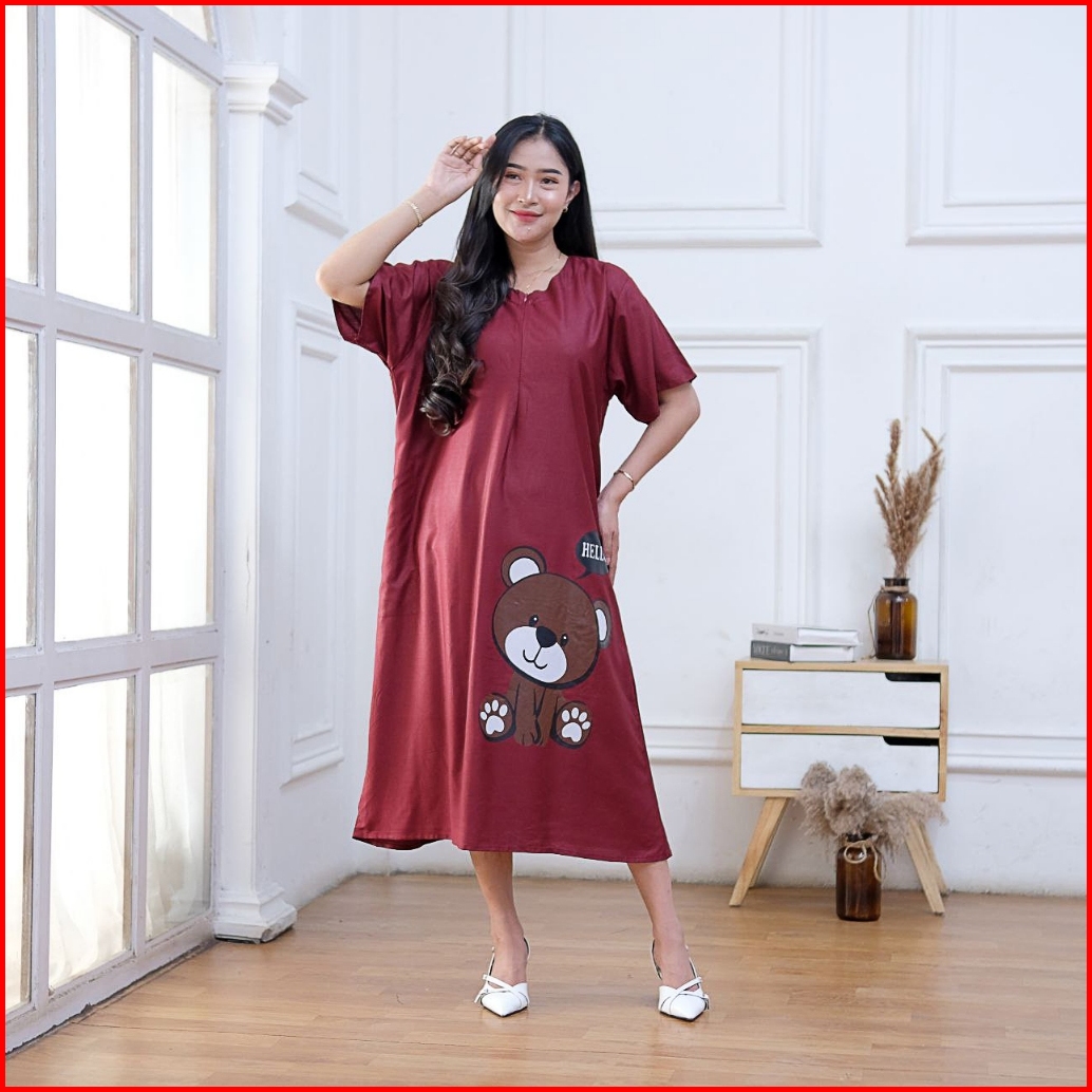 Daster Wanita Kekinian Terbaru Busui Motif Bear Bahan Adem Rayon Grade A