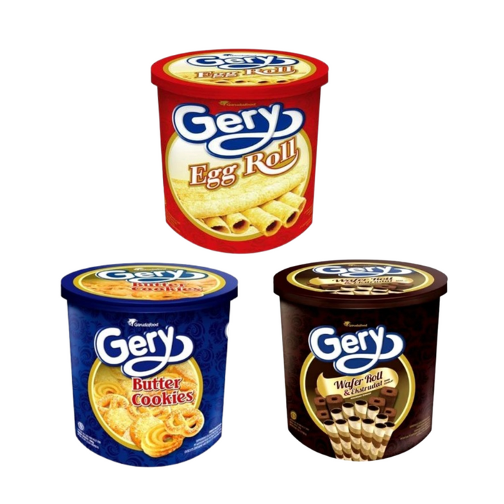 1 DUS ISI 6 GERY WAFER ROLL / EGG ROLL / BUTTER COOKIES / BISKUIT KALENG JAR KUE LEBARAN / CEMILAN 350gr