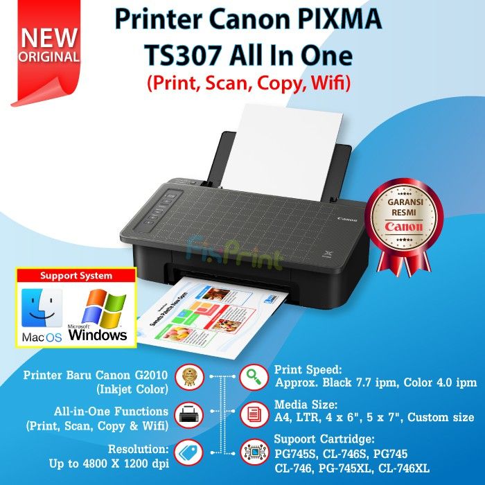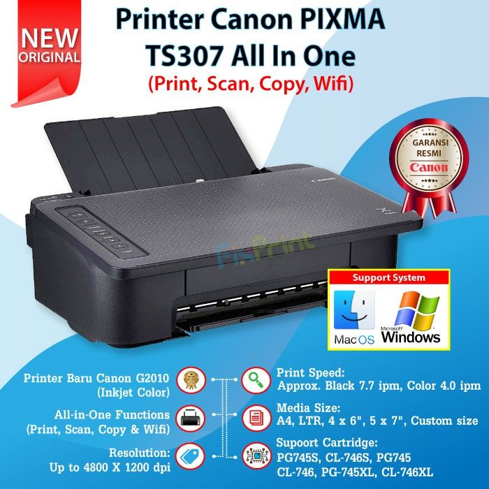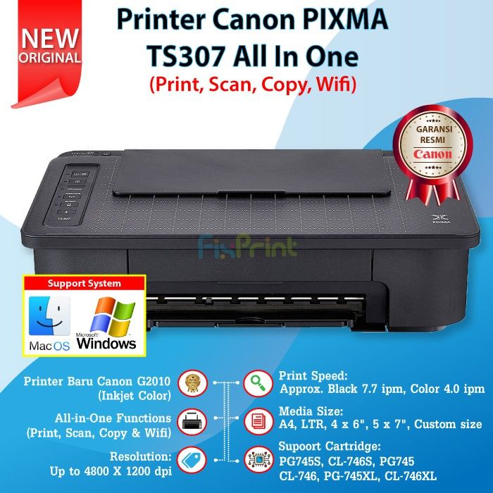 Printer Canon PIXMA TS307 Print Scan CPrinter Canon PIXMA TS307 Print Scan Copy WiFi Wirelesopy WiFi Wireless All In One