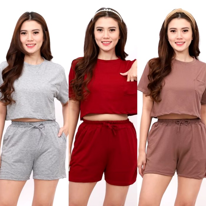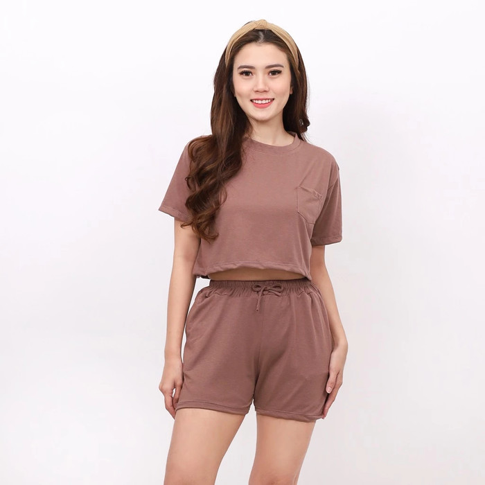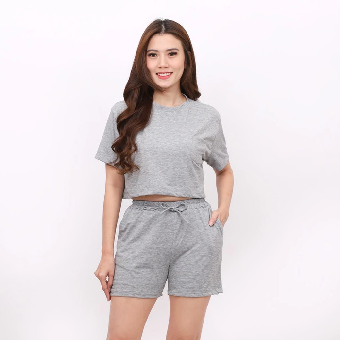 BAJU ONE SET SETELAN KAOS CROP RUMAHAN TIDUR LENGAN PENDEK SANTAI HARIAN WANITA CEWEK LUCU KOREAN STYLE TERBARU KEKINIAN - FANTA