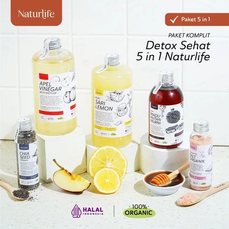 PAKET SUPER 1 NATURLIFE /CUKA APEL LEMON MADU HUTAN HIMALAYAN SALT CHIA SEED / cuka apel / cuka apel asli