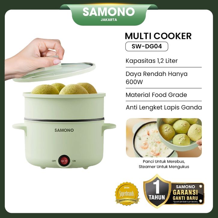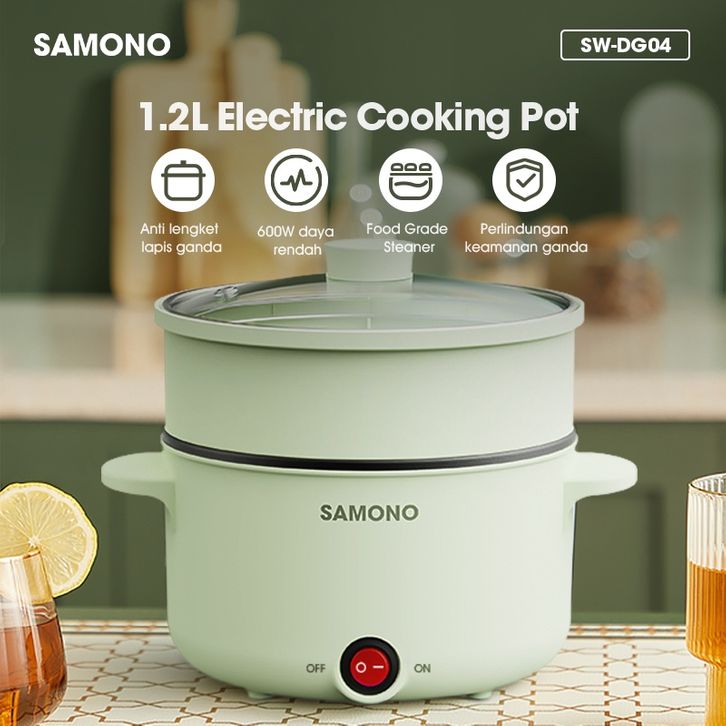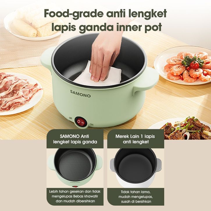SAMONO Panci Listrik Serbaguna untuk Fry Pan dan kukusan 1.5L Anti Lengket 150 Watt Material Food Grade SW-DG04 Garansi