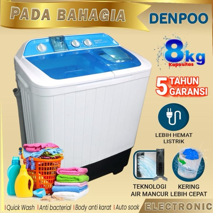GRATIS ONGKIR Mesin Cuci 2 Tabung 8 GRATIS ONGKIR Mesin Cuci 2 Tabung 8 Kg DENPOO DW 8908Kg DENPOO DW 8908