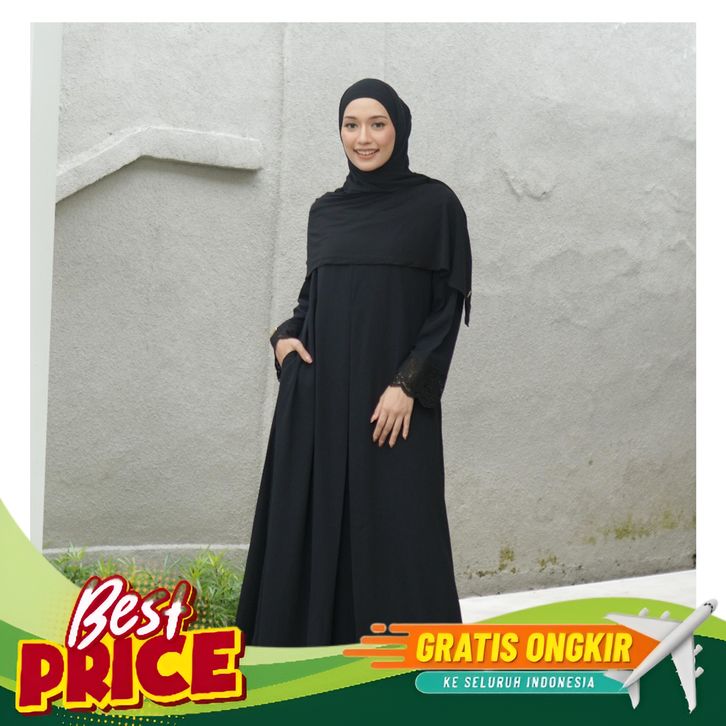 [Mall] TUBITA - Meena Lace Abaya Gamis Haji dan Umroh Polos Wanita Elegan All Color