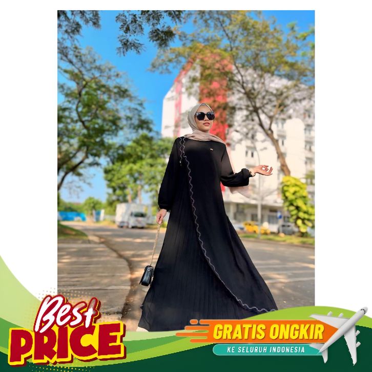 [Mall] Gamis Hawa x Nella'Style Ceruty Babydoll mix Payet dan Polos-Pakaian Muslim Wanita