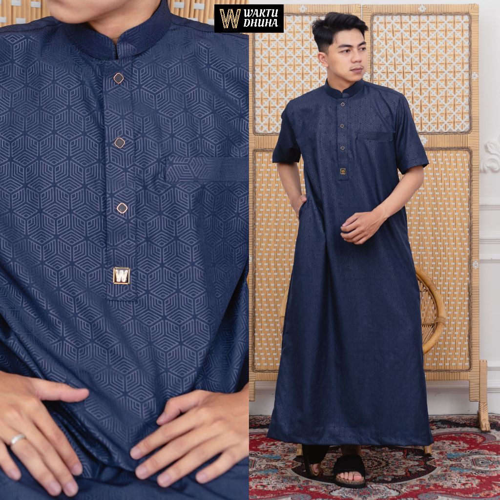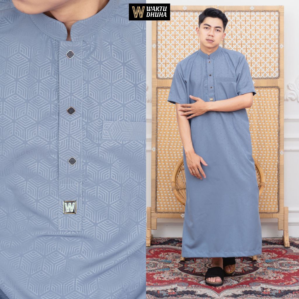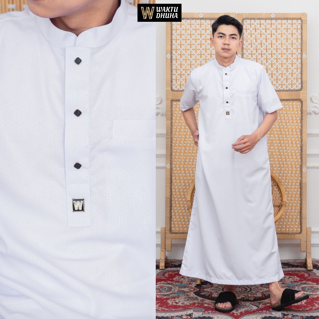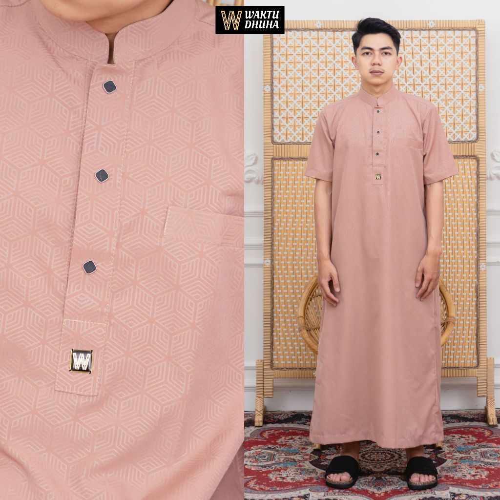 Jubah gamis pria lengan pendek bahan embos super adem jubah Dhuha slimfit premium terbaru JDA Dhuha couple