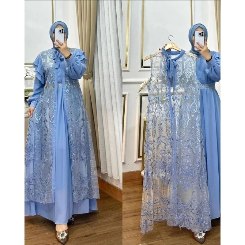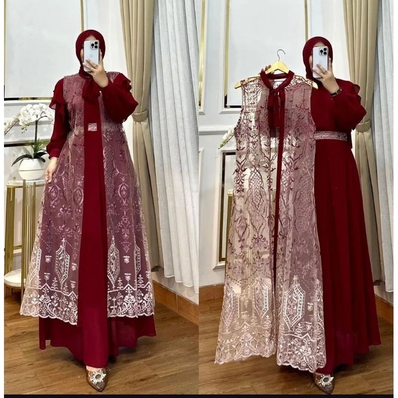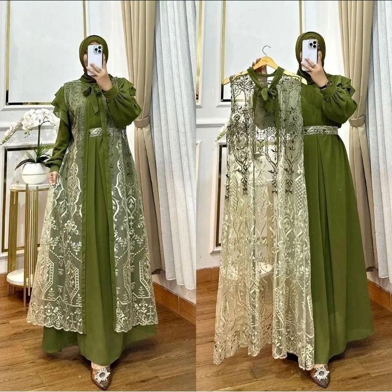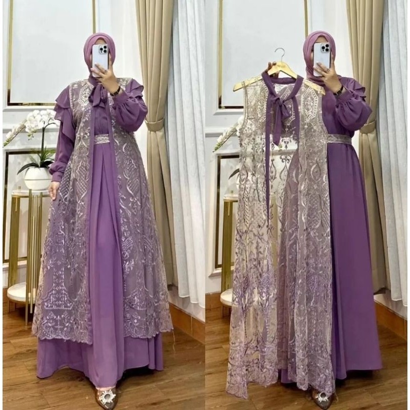 Dress Brukat Kondangan Nashita Dress / Baju Gamis Lebaran Wanita Terbaru 2025 / Gamis Pesta Mewah Elegan