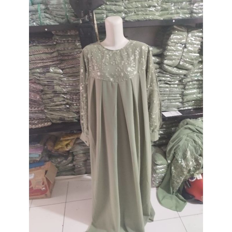 GAMIS WANITA AMEENA BAHAN CERUTY BABYDOLL MIX BRUKAT TILE DRESS KONDANGAN GAMIS WARNA HIJAU DRESS GAMIS IMPORT GAMIS MEL