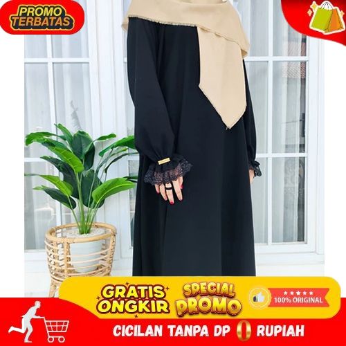 [Mall] Abaya Yumna Terlaris Gamis Polos Lengan Karet Renda Ada Tali Cincin Busui Simpel Mewah Elegan