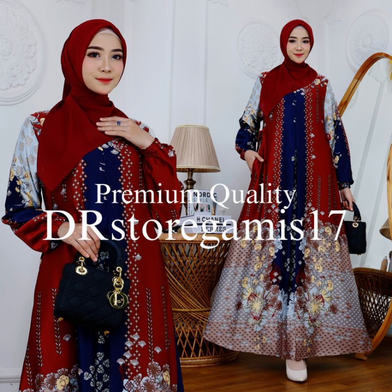 (Free Ciput)Gamis Silk Premium Quality A Gamis Cantik Motif Bunga Terbaru Ready Seragaman M L XL 4L 6L Gamis Silk Premiu