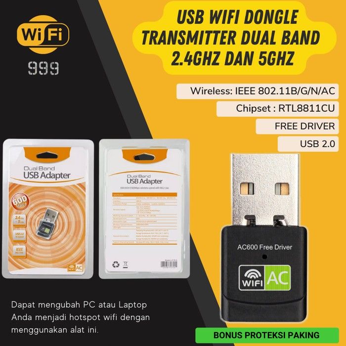 Mini USB Adapter WiFi Transmitter Receiver Dongle Dual Band 600Mbps