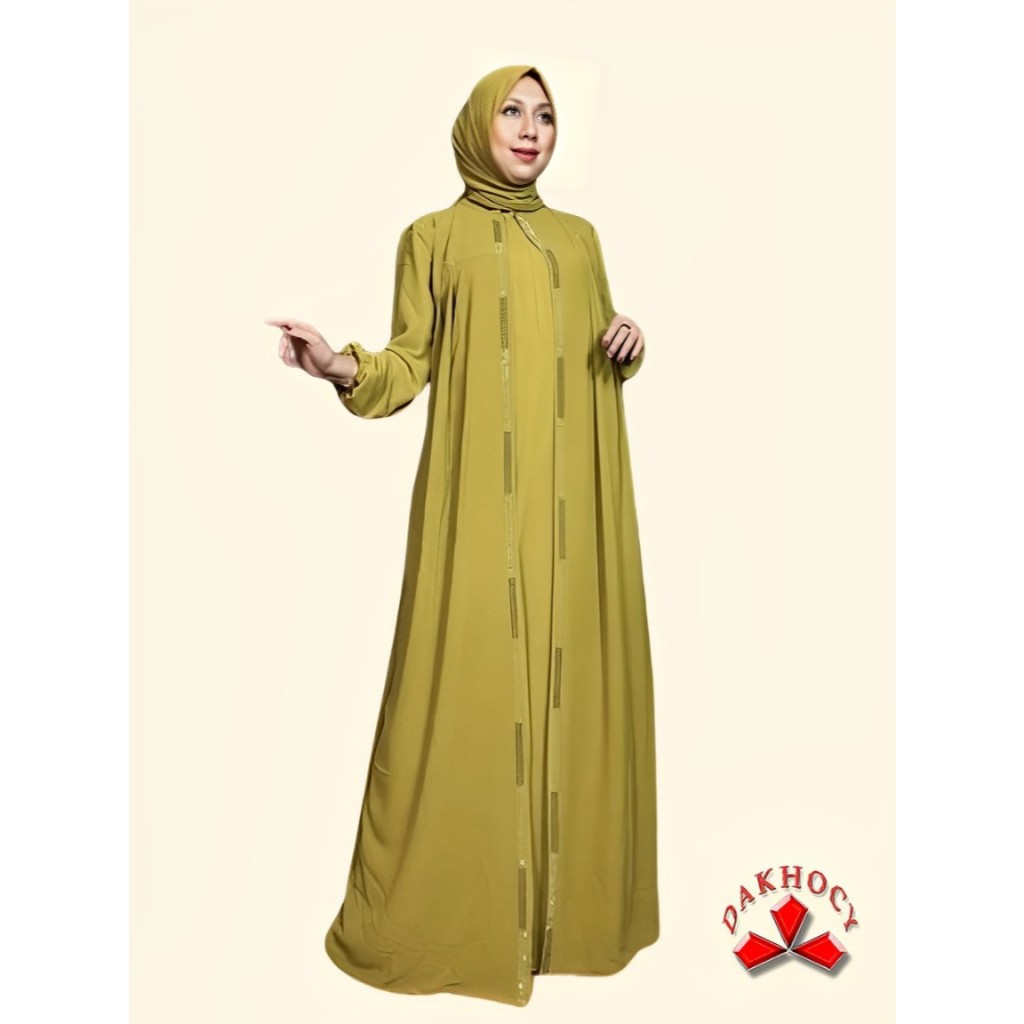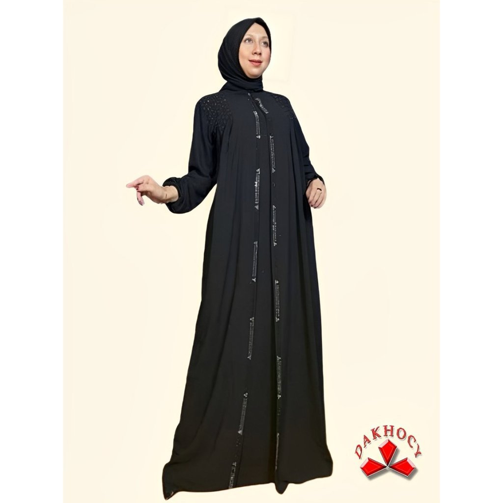 Dakhocy - Gamis Terbaru Bahan Ceruty Babydoll Payet Swarovski Double Puring/Lengan Karet/Tali Pinggang/Busui Frendly/Fas