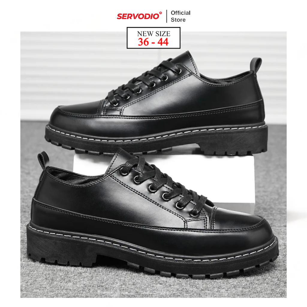 Servodio Sepatu Pria Sepatu Cowok Sepatu Formal Docmart Karet Empuk Black