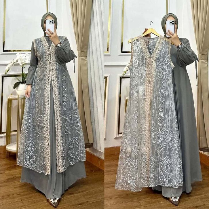 Gamis Brokat Dress Gamis Bahan Ceruty Babydoll Mix Brukat Gamis Pesta Kondangan Brukat Mewah Elegant Harga Murah