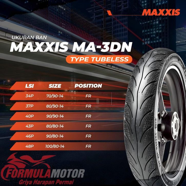 90/90-14 Maxxis Diamond MA-3DN Ring 14 Tubeless - Ban Belakang Motor Matic Vario, Beat, Scoopy Original Produksi Terbaru