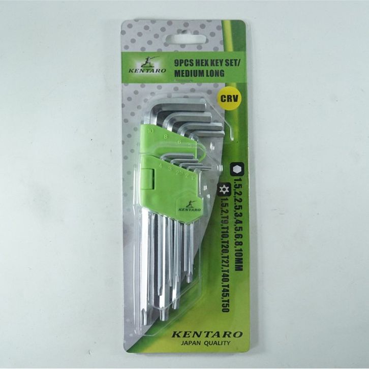 KUNCI L + BINTANG HEX KEY 9PCS SET MEDIUM LONG KENTARO JAPAN QUALITY PROFESSIONAL TOOL