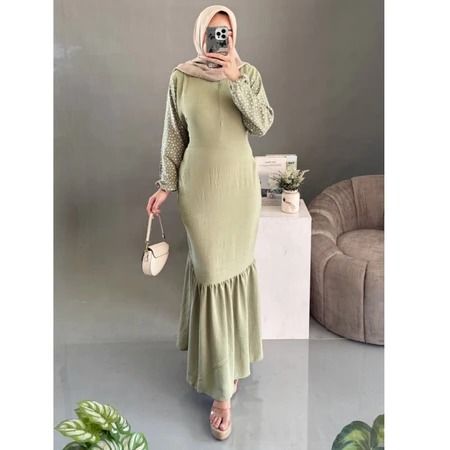 Baju gamis - gamis wanita - dress - Diva Gamis Muslim Wanita Kekinian Dress Mermaid Crinkle Airflow Mix Rayon