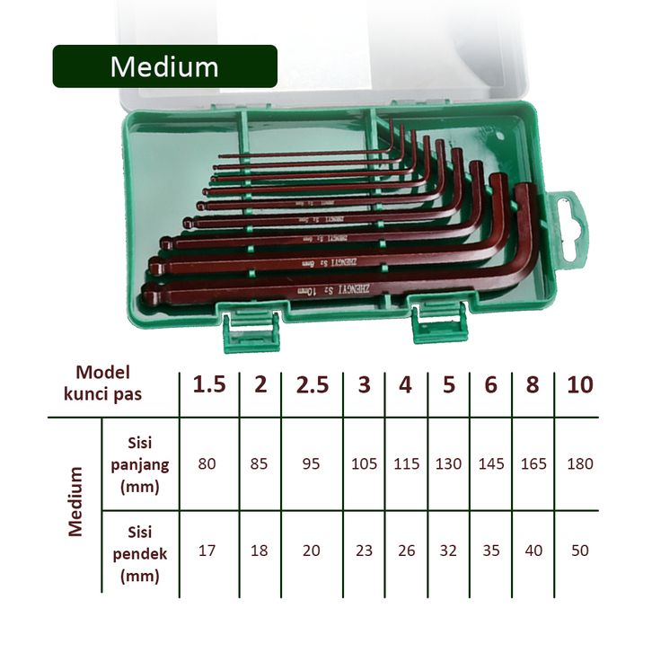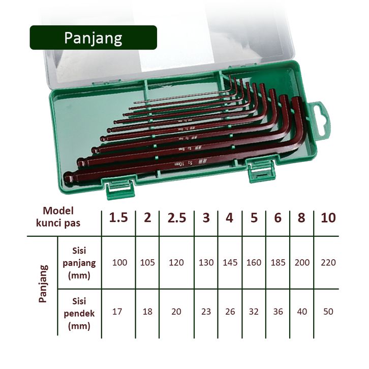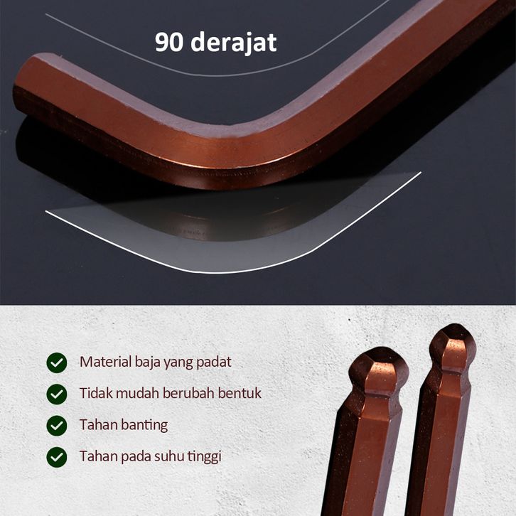 KUNCI L SET PANJANG BALLPOINT 9 PCS ( 1.5 - 10 MM ) HEX KEY SET BAHAN S2 TIDAK BERKARAT