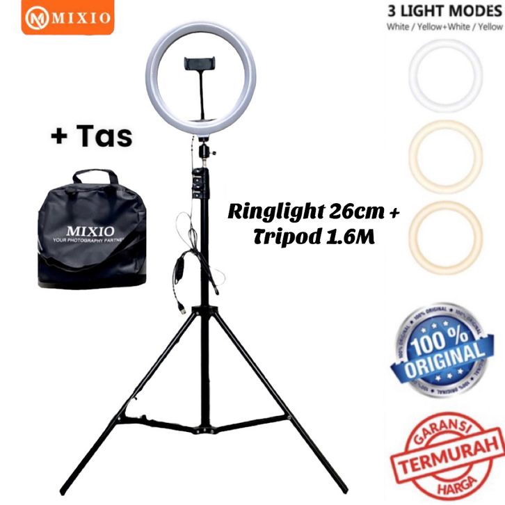 MIXIO Ring Light 26cm + Light Stand Tri 1.6M Selfie Livestreamer