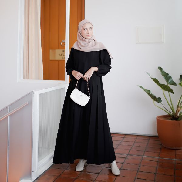 Dress Wanita Camila Dress Hitam Gamis Abaya Umroh / Dress Kondangan Modern
