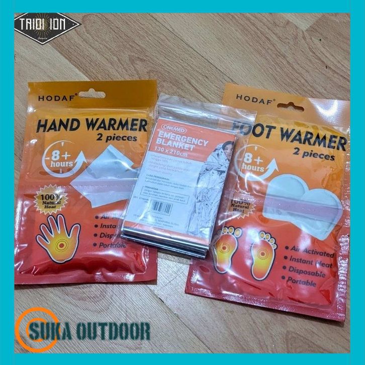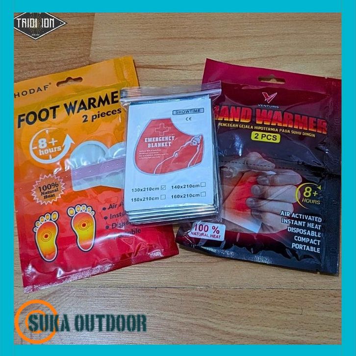 1 Paket Anti Hypothermia Emergency Blanket Foot Warmer dan Hand Warmer