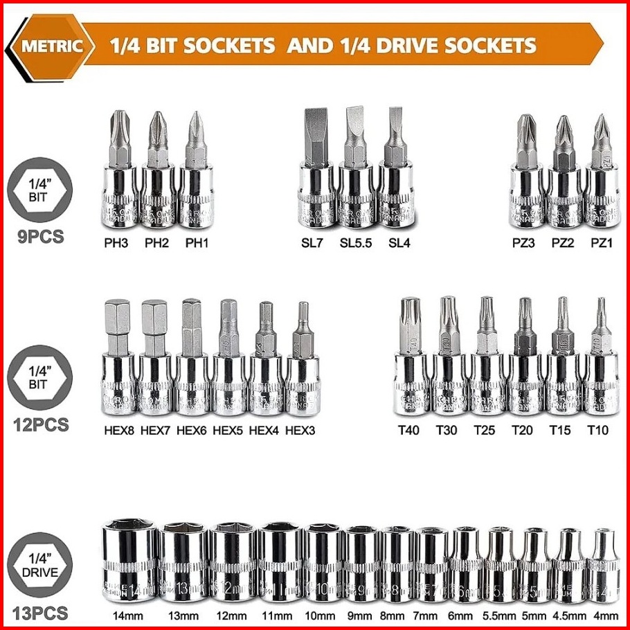 Usefultools Kunci Sok 46 Pcs Set Socket 1 4 Full Lengkap Socket Tool Kit Pas Ring L Motor Mobil