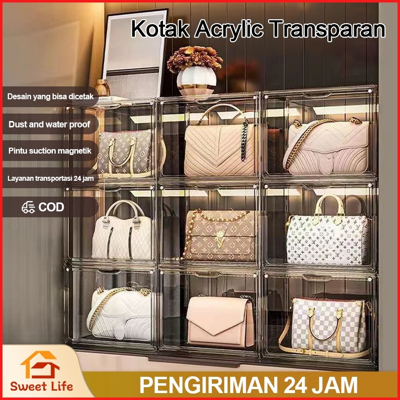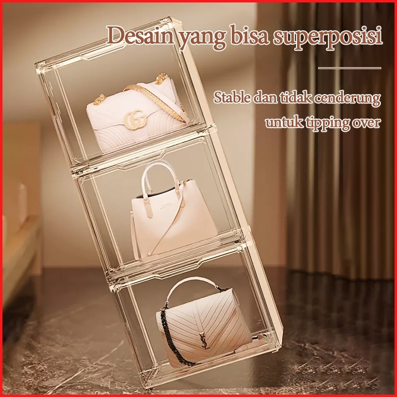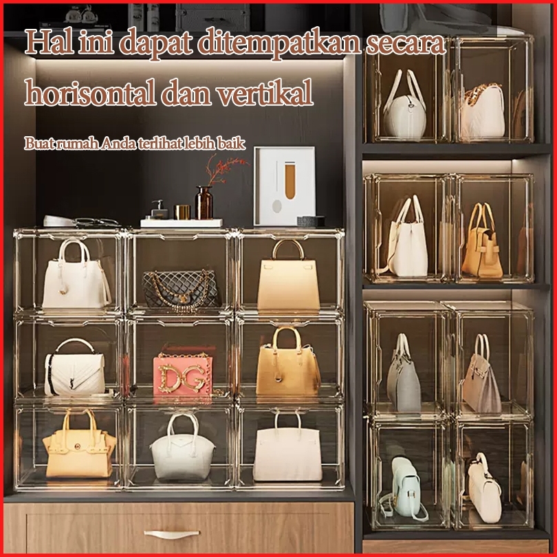 Display Box Tas Transparant Transparent Storage Acrylic Akrilik Tempat Tas Bag Box Penyimpanan Organizer Box