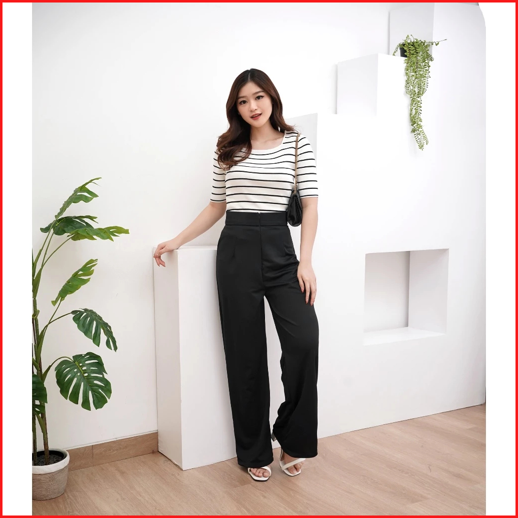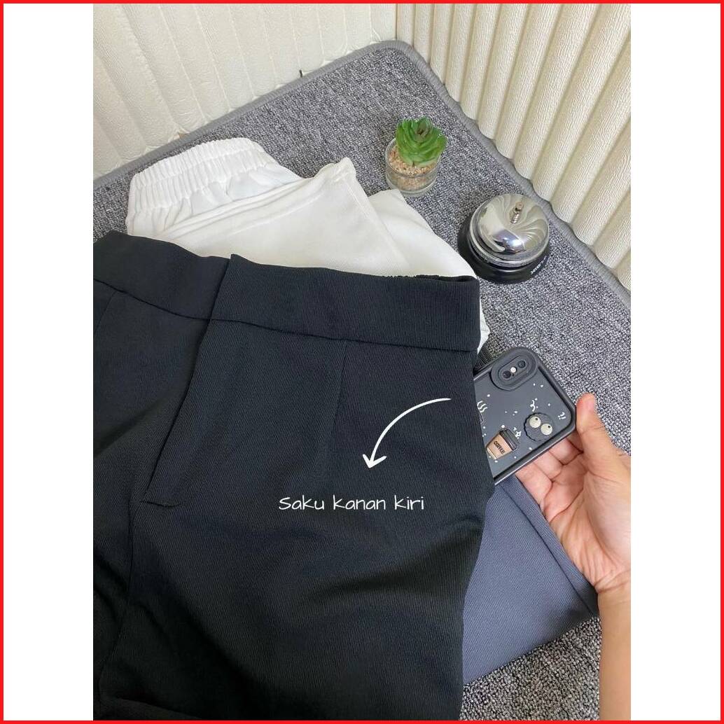 Cozie Pants Rib Knit Premium Highwaist Cullote Loose Pants Petite Friendly Celana Wanita Anti Kusut