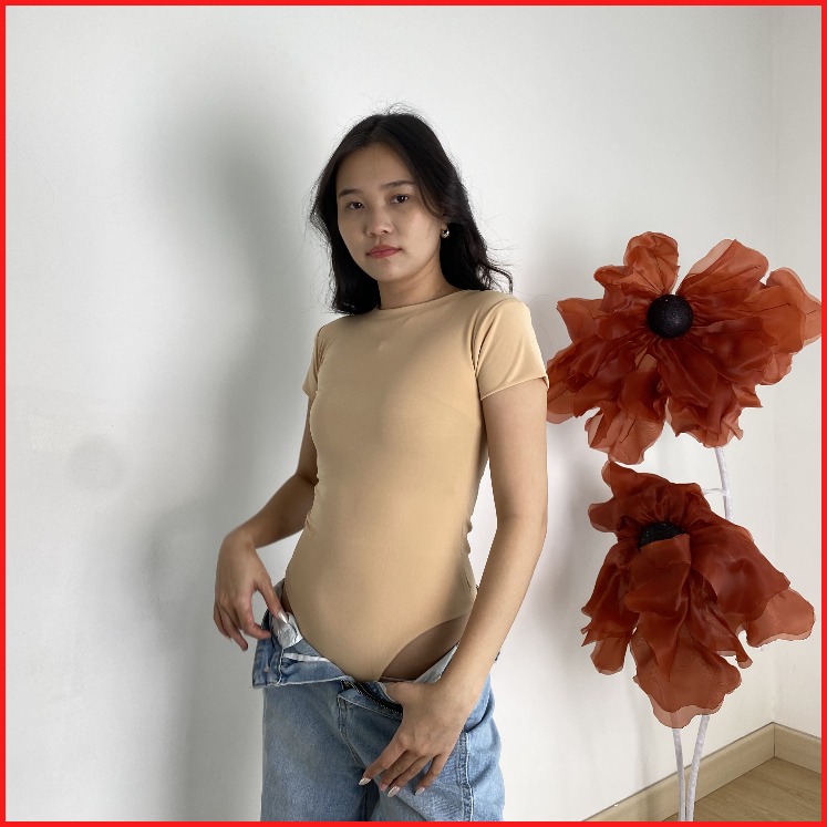 Gisel Bodysuit Wanita - Bodysuit Basic Polos Lengan Pendek - Kaos Jersey Spandex - Atasan Wanita