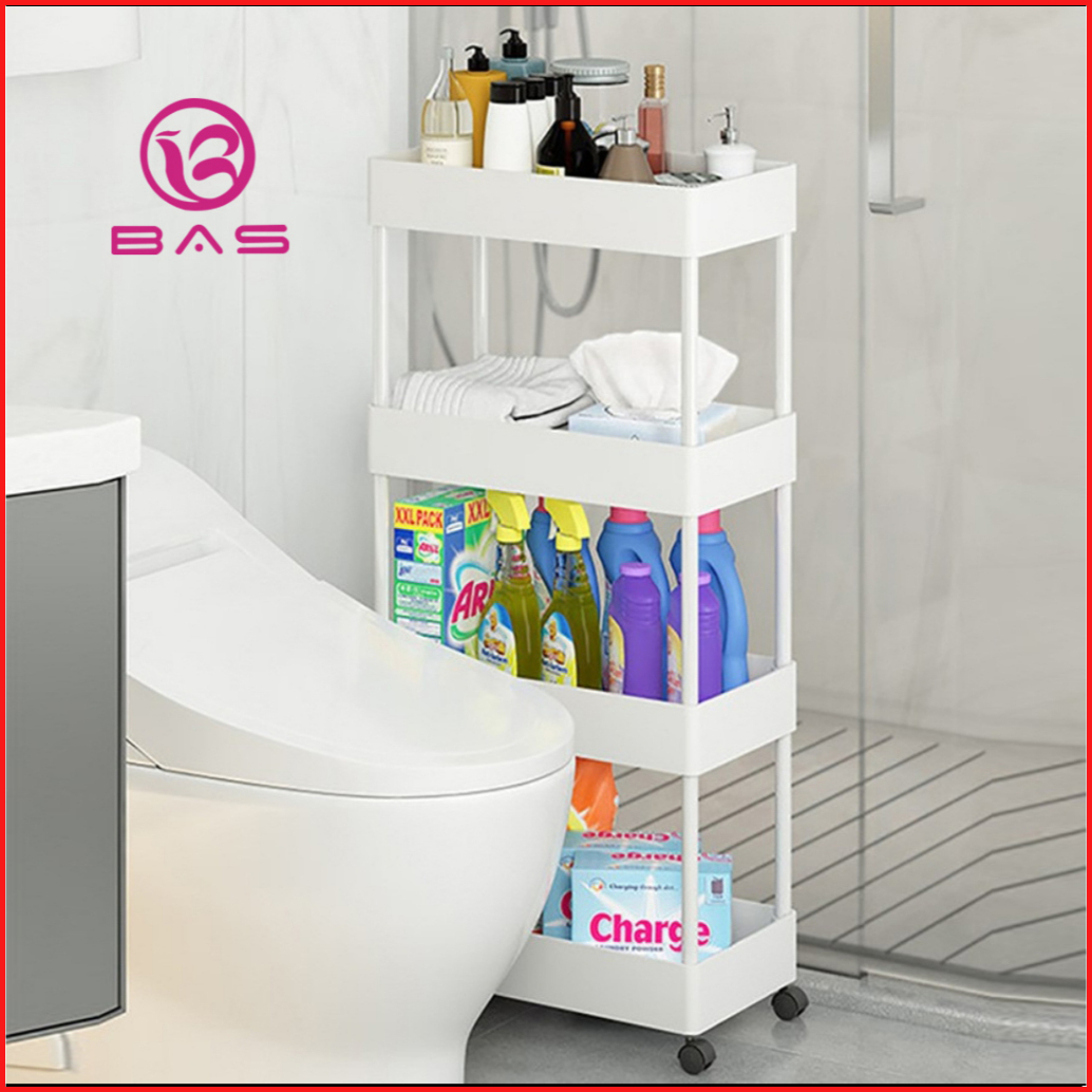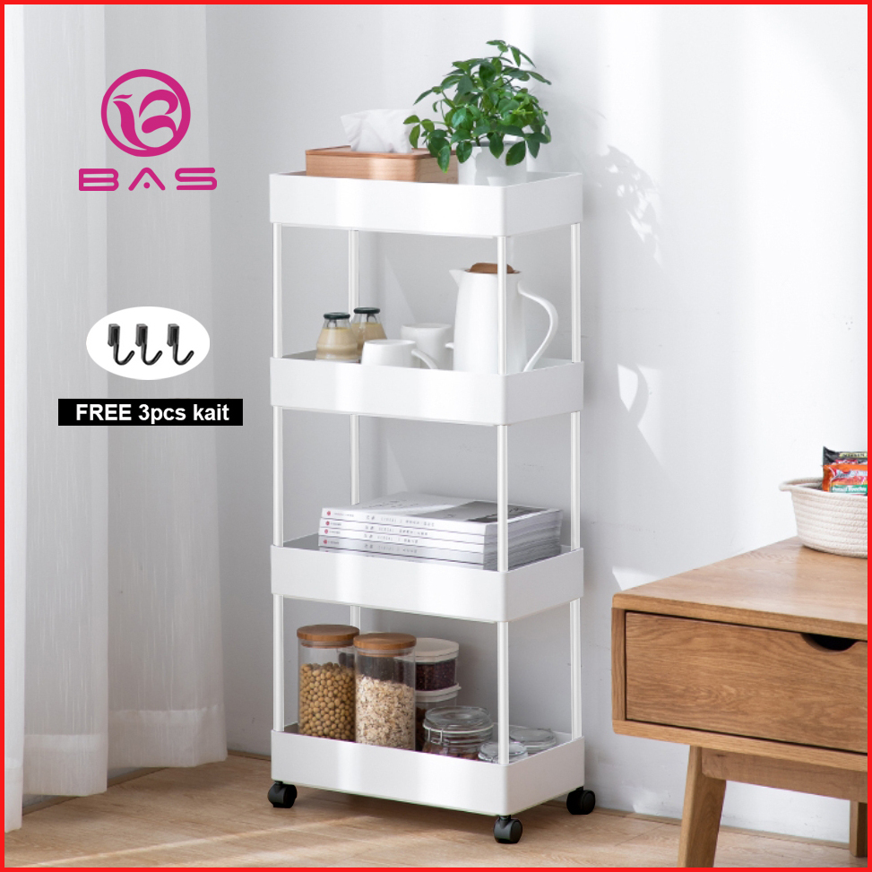 Bas Square Rak Troli Rak Dapur Rak Serbaguna 4 Tingkat Dengan Roda
