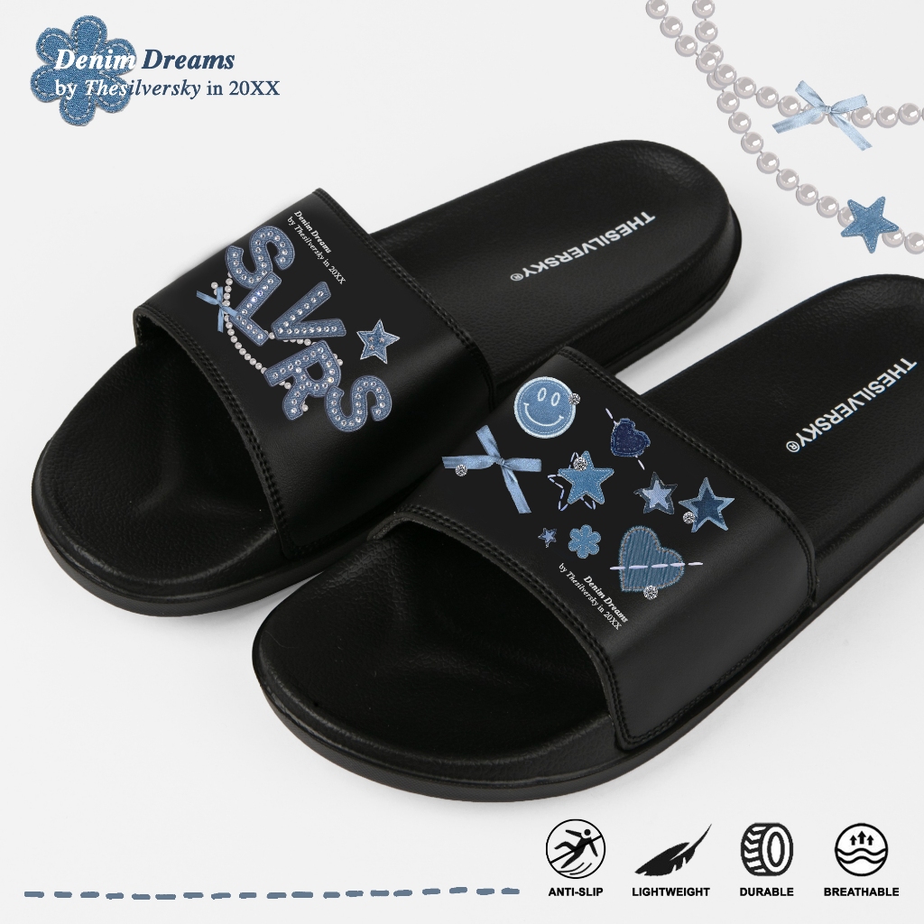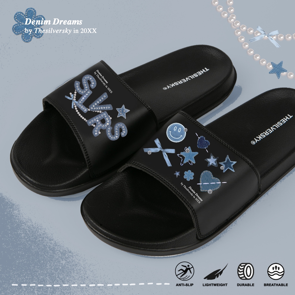 Sandal Wanita Thesilversky Denim Dreams Sandal Slide Premium Slip On Wanita Korea Jeans New Kekinian