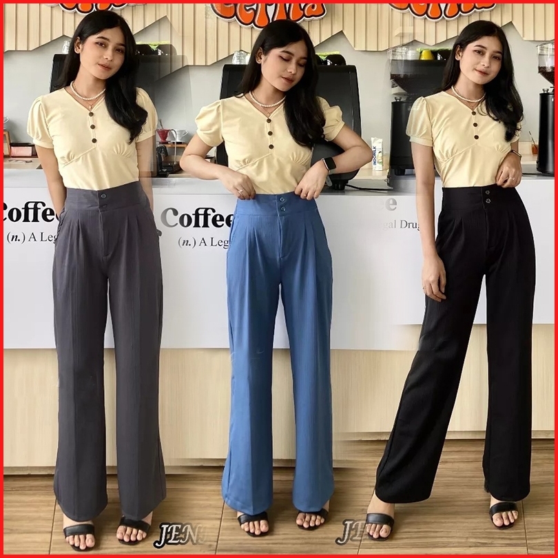 Celana Kulot Highwaist Daily Wanita Jennie Pants Knit Premium Cullote Highwaist Panjang Kekinian