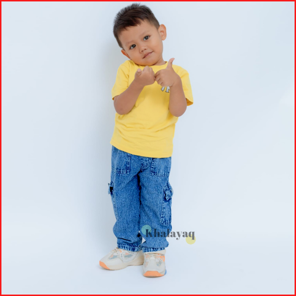 Celana Panjang Cargo Anak Laki 1 7 Tahun Kain Jeans