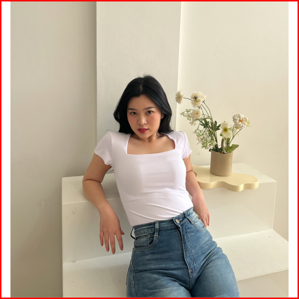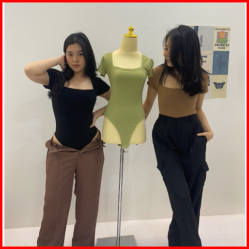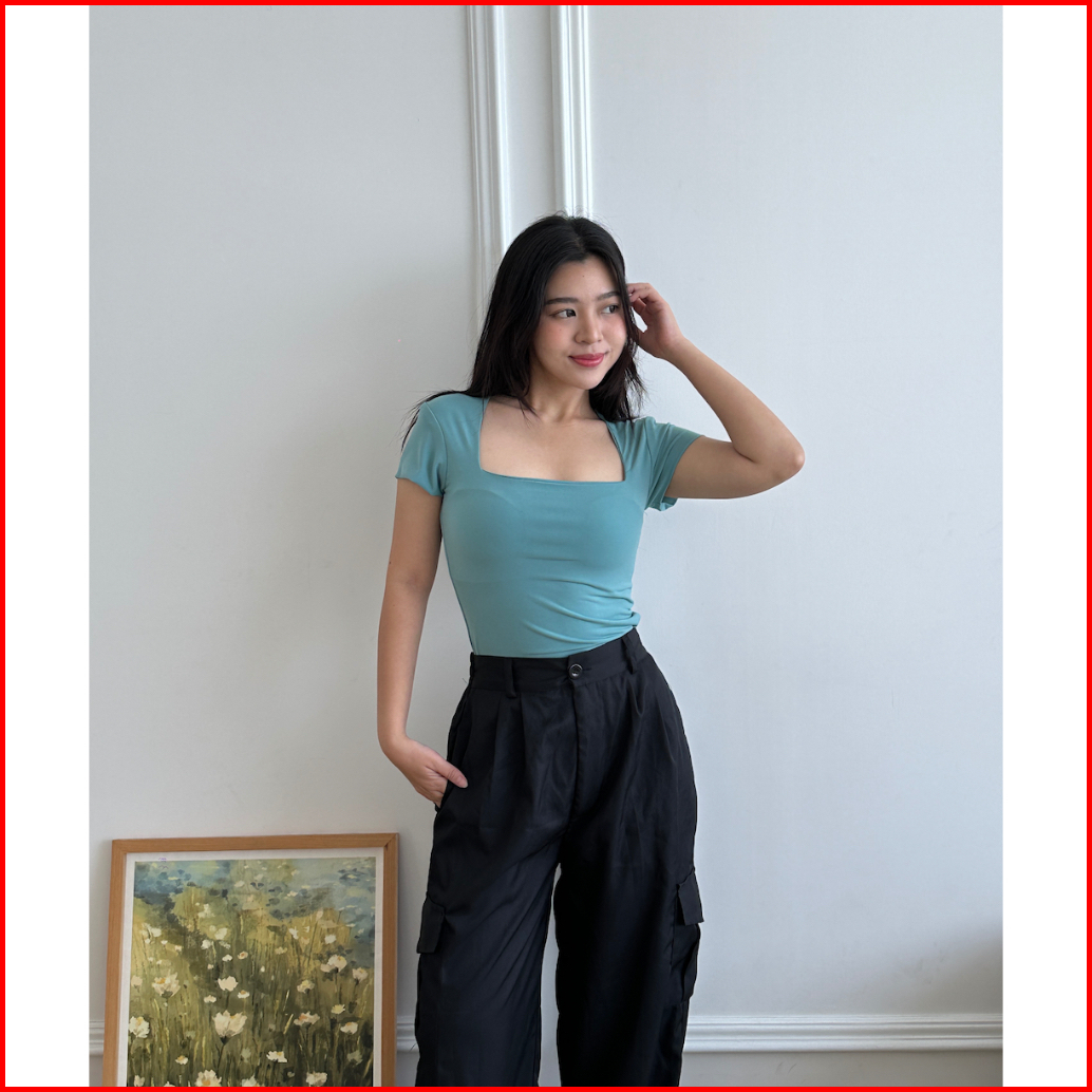 Somethingsweet - Rena Bodysuit Wanita L Atasan Wanita L Bodysuit Basic Lengan Pendek L Leher Kotak Wanita