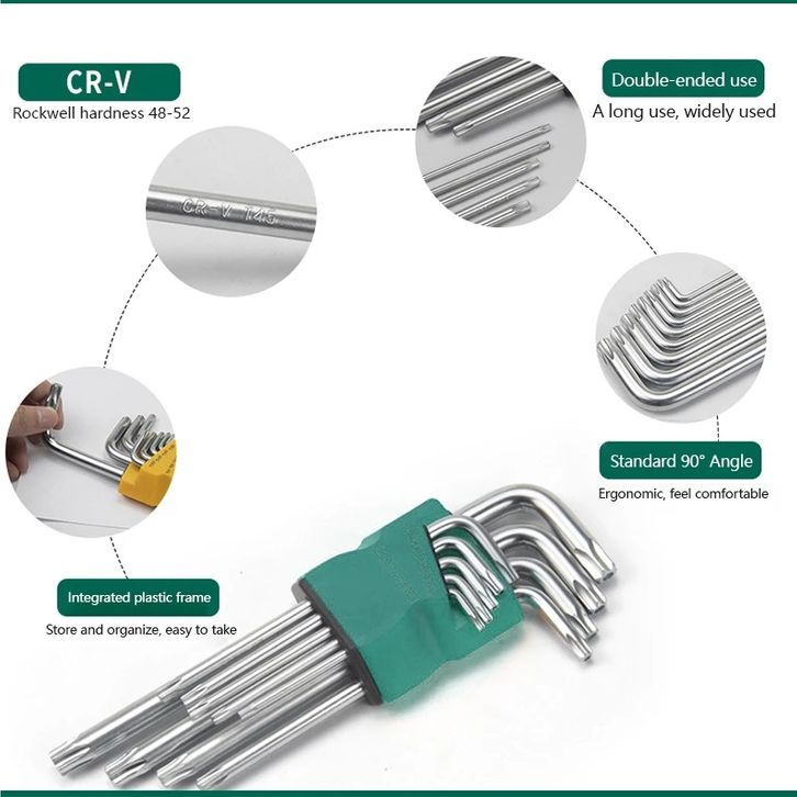 KUNCI L BINTANG SET ORIGINAL 9PCS KUNCI L PANJANG SET PANJANG PENDEK HEX TORX WRENCH SET BAHAN VANADIUM CHROME