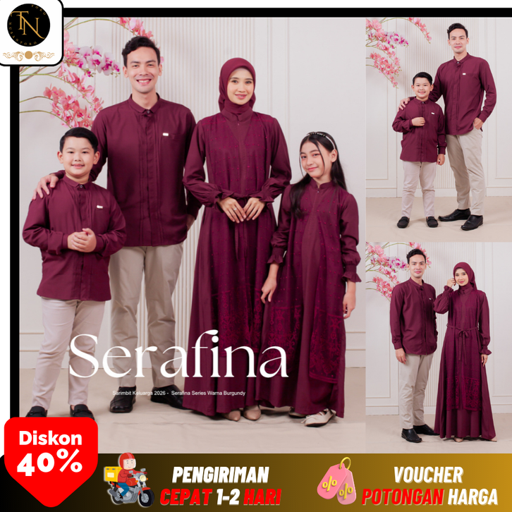 Baju Lebaran 2026 Serafina ( Burgundy ) Baju Couple Keluarga | Sarimbit Lebaran 2026 Warna Burgundy Grey Dusty Pink