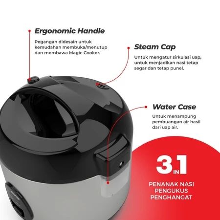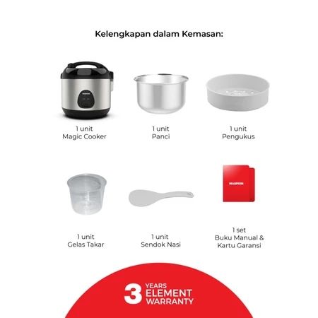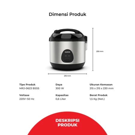 FREE ONGKIR-Maspion Rice Cooker Magic Com 0.6 Liter MRJ 0623 BSSS Stainless Penanak Nasi