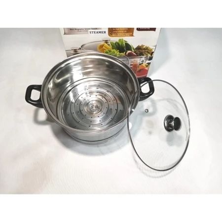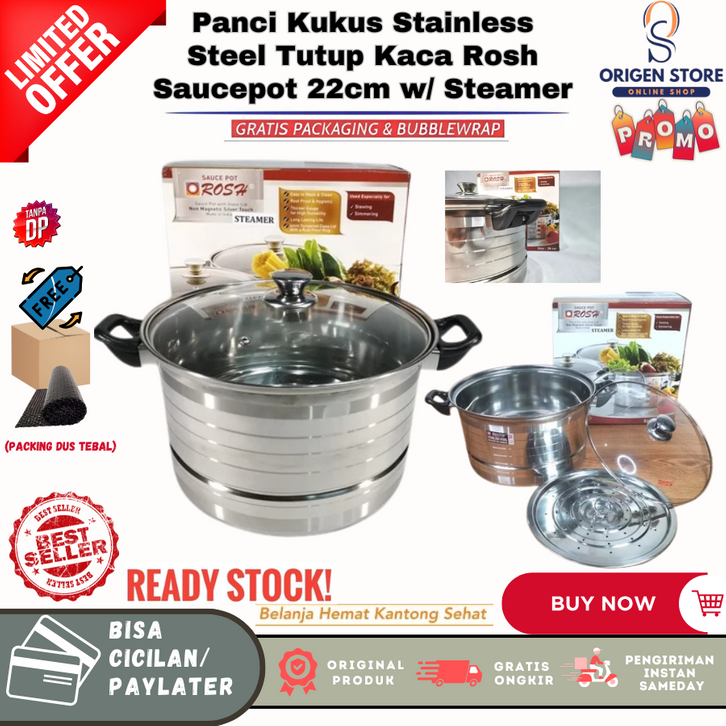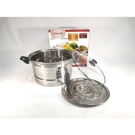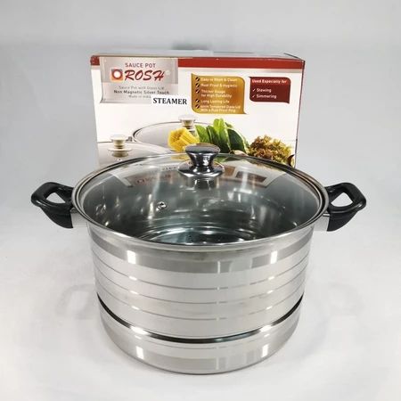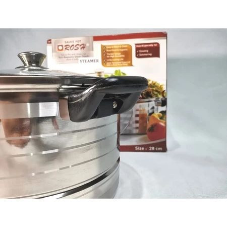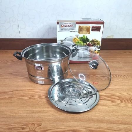 Panci Kukus Stainless Steel Tutup Kaca Rosh Saucepot 22cm w/ Steamer