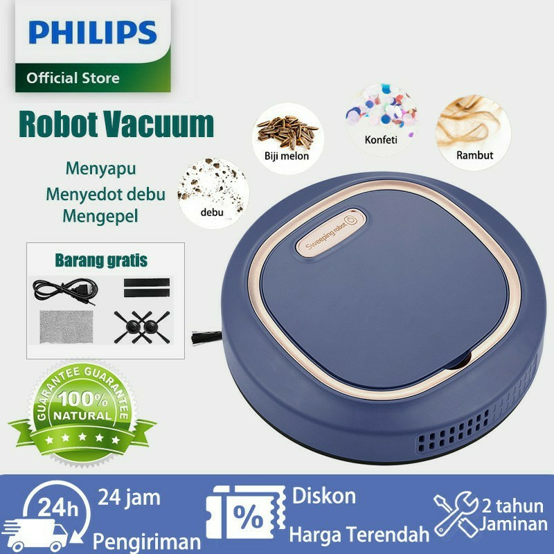 Smart Robot Vacuum Philips Penyedot Debu Rumah Sapu Otomatis Portable Robot Pembersih Lantai