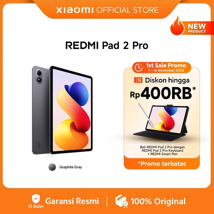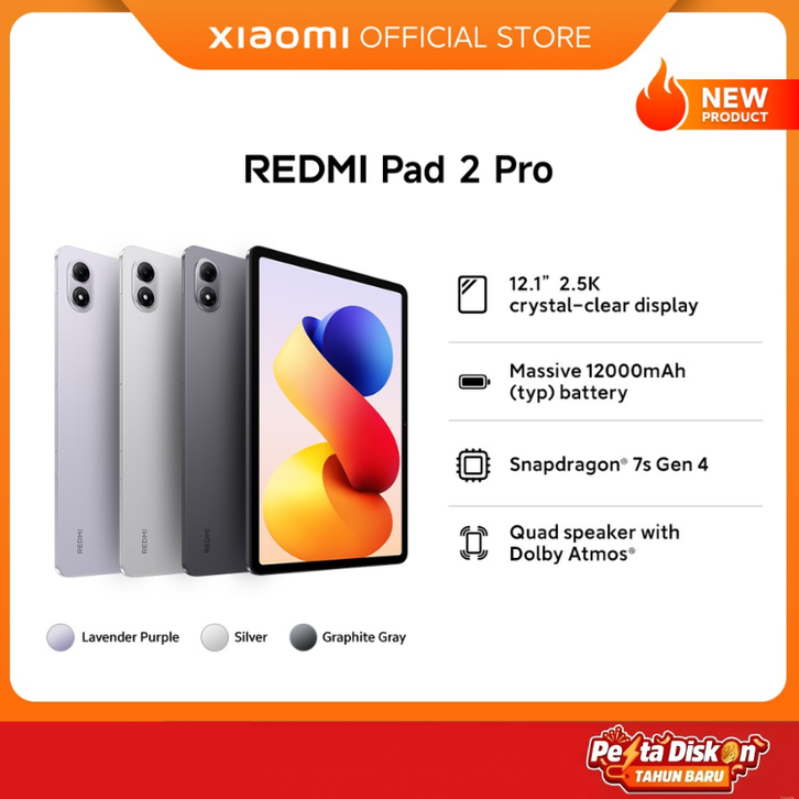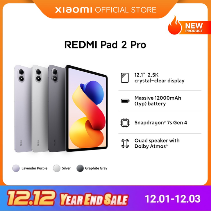 [Mall] TABLET REDMI PAD 2 PRO ORIGINAL 12.1" 2.5K CRYSTAL-CLEAR DISPLAY MASSIVE 12000MAH (TYP) BATTERY SNAPDRAGON 7S
