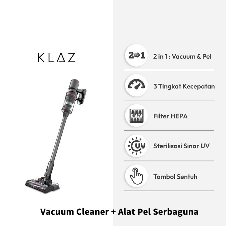 Klaz Vacuum Cleaner Dry Cordless Flexible Dengan Mop / Vacuum Cleaner + Pel Serbaguna